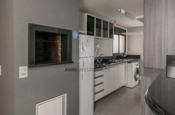 Awm Vende, Apartamento semi-mobiliado com 67m², 2 quartos e 2 vaga de garagem, no último andar, com vista espetacular, sol da tarde. 1 suíte, living para 2 ambientes, cozinha americana com churrasqueira, banheiro social, área de serviço. Condomínio com infra completa de lazer e baixo custo condominial. É composto por churrasqueira, elevador, fitness, gás central, medidor de água individual, interfone, piscina adulta e infantil, playground, portaria 24h, quadra poliesportiva, quiosque, sala de jogos e salão de festas