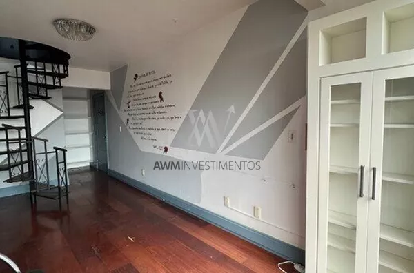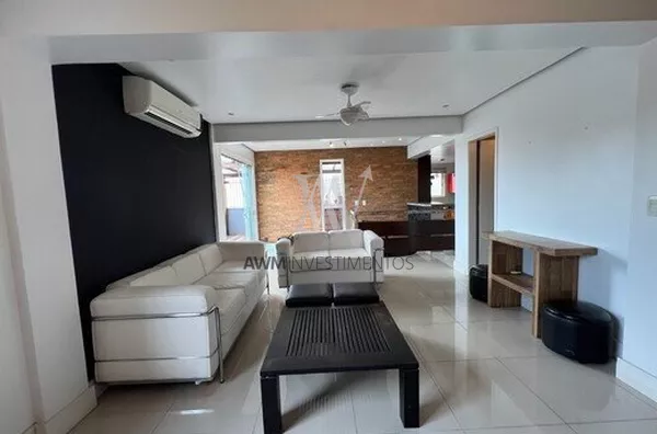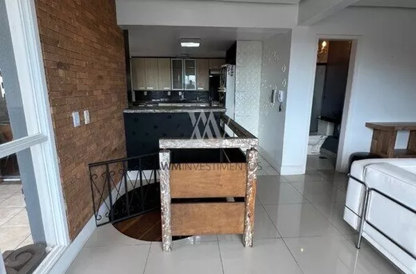 Awm Vende, apartamento duplex de 158 m2 privativos de 2 dormitórios, transformada atualmente em 1 única suíte máster com closet e banheira hidro. No pavimento superior possui cozinha, área de serviço, sala, dormitório hóspedes (ou home office) e terraço com churrasqueira.