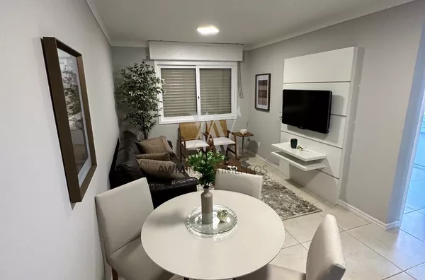 Imóvel bem iluminado, ótimo estado de conservação, reformado, 02 dormitórios, mobiliado e decorado, banheiro social e lavabo, cozinha separada, churrasqueira e na parte superior conta com uma sala de estar, lavabo e um amplo terraço com churrasqueira, vista liberada bem ventilada e iluminada, 01 uma vaga de estacionamento no térreo. Edifício com hall de entrada mobiliado, zelador e elevador.