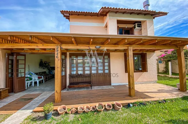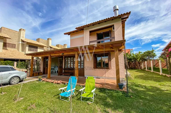 Awm Vende Casa 02 pisos , com 03 dormitórios sendo 01 com sacada , sala 02 ambientes com lareira , cozinha americana, totalmente mobiliada , garagem com churrasqueira , Amplo pátio gramado, bem próximo ao Mar.