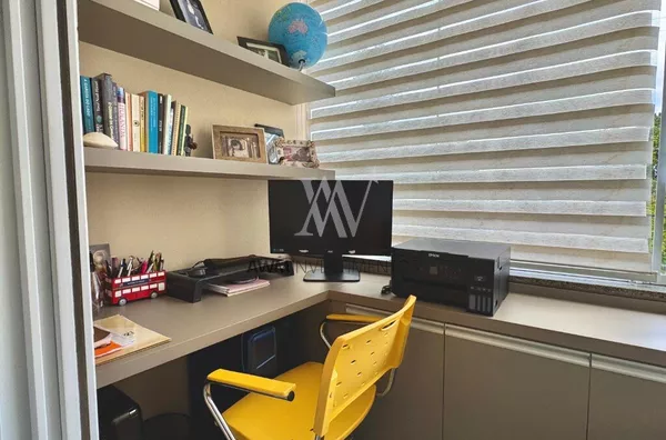 Os dormitórios, home office, cozinha, banheiros e área social contam com móveis sob medida de alta qualidade, otimizando a organização e o aproveitamento dos ambientes. Nos fundos, um pátio aconchegante com edícula equipada com churrasqueira, área de serviço e banheiro auxiliar, criando o espaço ideal para receber amigos e família com conforto.