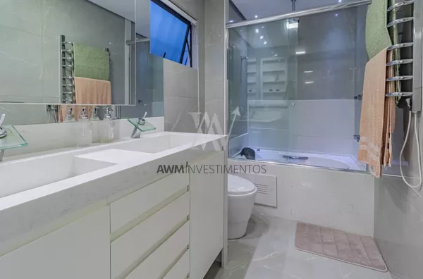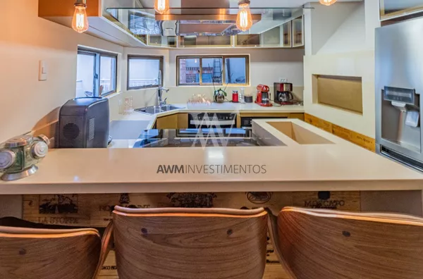 Awm Vende, Extraordinária cobertura com 3 dormitórios, sendo 1 suíte master com hidro, amplo living com sacada fechada, lareira, cozinha, lavanderia e dependência de empregada com banheiro. Na parte superior living e cozinha integrada, home office, banheiro e terraço com ótimo espaço ao ar livre e quiosque gourmet. 2 vagas cobertas com acesso privativo + depósito.