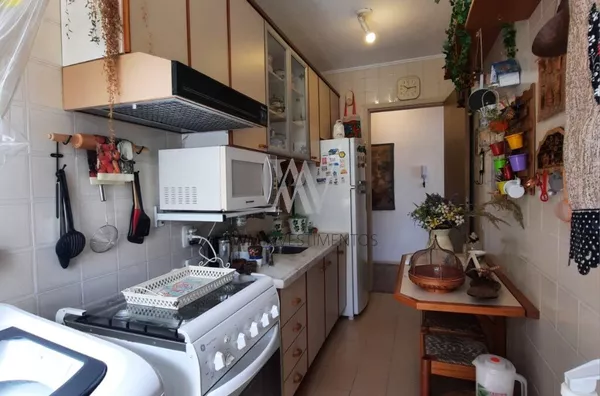 Awm Vende apartamento de 1 dormitório com 45m² de área privativa, dispondo de hall de entrada, living para dois ambientes, cozinha montada com área de serviço integrada e duas amplas janelas basculantes, área de circulação interna com recuo podendo acomodar uma bancada de trabalho ou armário para otimização de espaço, banheiro com ventilação por janela. Linda vista panorâmica tanto do dormitório, quanto da sala, tendo a orientação leste e norte que o torna bem ensolarado e com ótima iluminação natural e ventilação. Dispõe de uma vaga de estacionamento coberta conforme Regulamento Interno. Localizado no último andar, de fundos e lateral, sendo muito silencioso. Prédio pequeno com apenas 14 apartamentos, contemplando jardim, hall de entrada, porteiro e portão eletrônicos e monitoramento por câmeras podendo ser acessado através do celular.