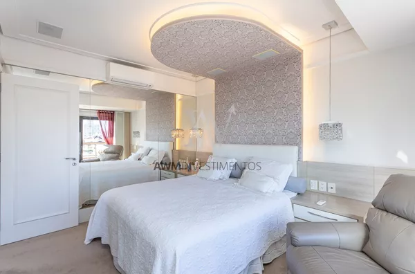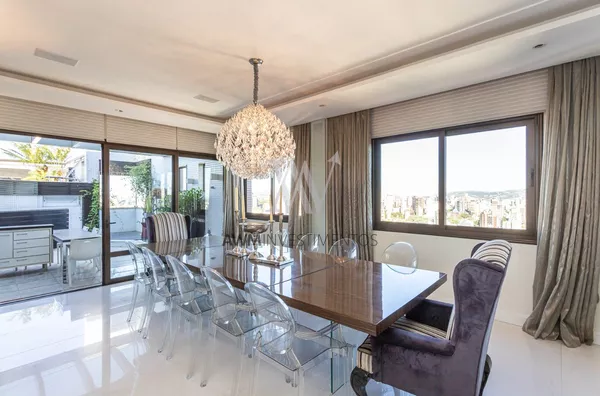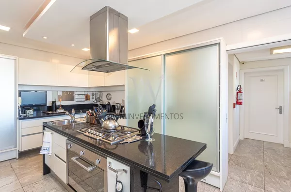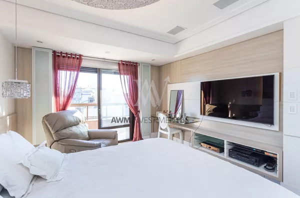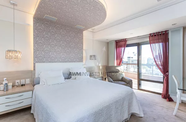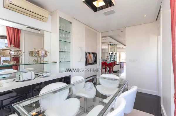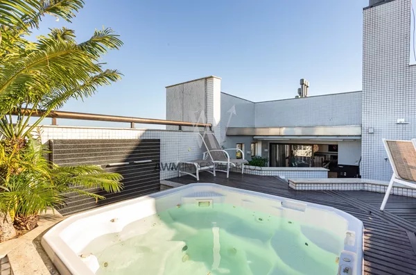 Awm Vende Cobertura com 04 dormitórios, 4 suítes sendo duas delas com closet e hidromassagem. Imóvel amplo com total privacidade. Elevador privativo, hall, living para 5 ambientes, sala de estar com sacada e lavabo, sala de tv com lareira, sala de jantar, sala de churrasco, e area externa com churrasqueira parrillera e deck com Hidromassem.Todo apartamento possui sistema de automatização de iluminação e persianas e sistema de aspirador central.