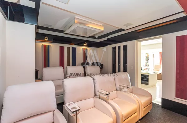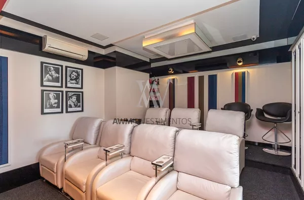 Na area intima temos ampla cozinha/copa com ilha, lavanderia, despensa, entrada de serviço, dependência completa, sala de cinema, escritório.