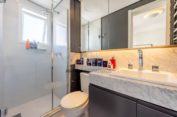 A planta possui 73m² privativos, com ambientes planejados, com móveis feitos sob medida, splits instalados, sacada com vista, andar alto e muito iluminado.