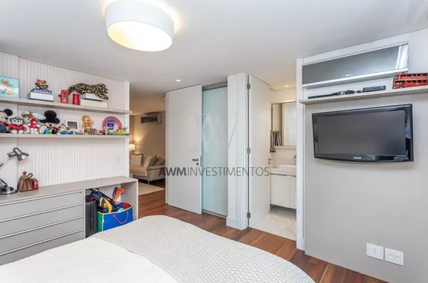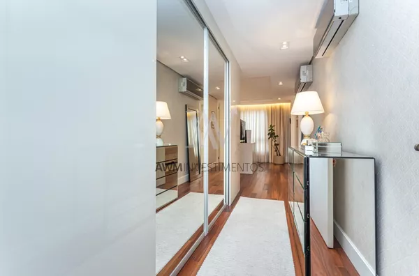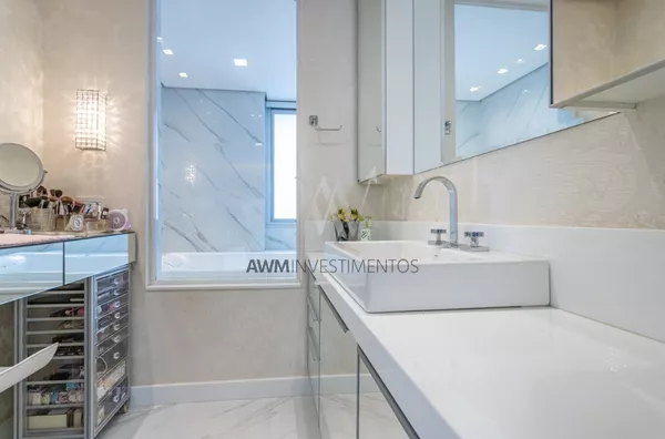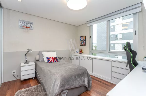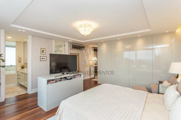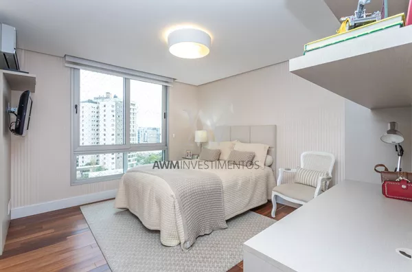 Awm Vende apartamento com 04 dormitórios , 4 suítes, sendo uma delas com jacuzzi e closet. hall privativo, living com pé direito duplo para 4 ambientes, espaço gourmet com bancada e churrasqueira, sala de jantar, sacada com piscina privativa com a melhor vista de Porto Alegre, sala de estar com lareira, lavabo, cozinha com acesso independente a área intima, entrada de serviço e dependência de empregada completa.