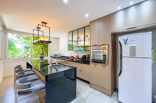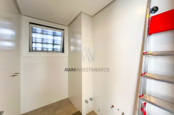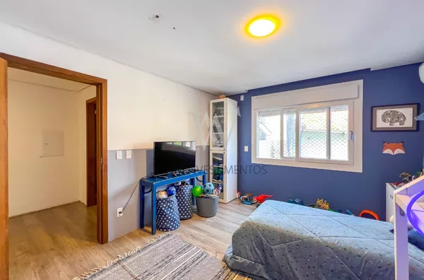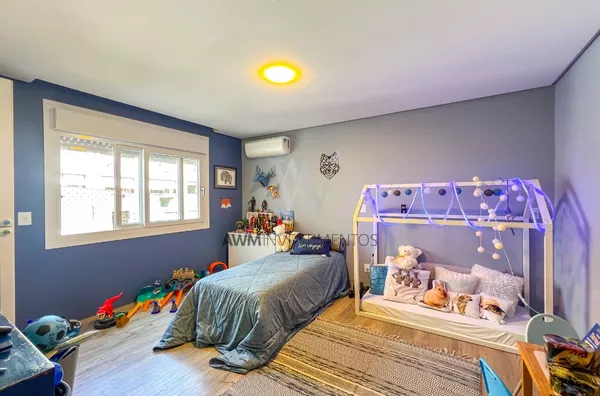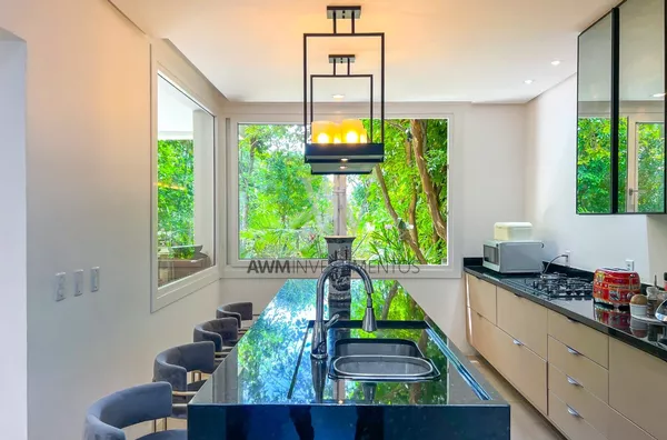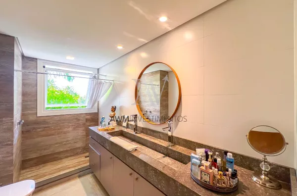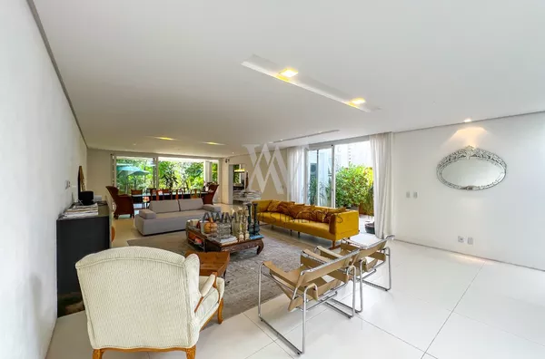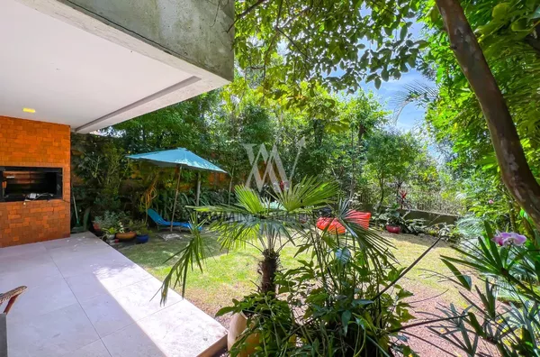 O andar principal conta com hall de entrada, lavabo, living super espaçoso com jantar, estar com lareira, jardim de inverno, cozinha gourmet integrada ao living, lavanderia, ampla varanda com espaço churrasco e um belo pátio com muito verde.