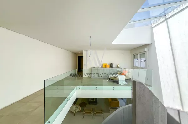 Para acessar o andar superior subimos uma escada super moderna toda em concreto aparente e acessamos a área íntima com 03 dormitórios, 02 suítes com sacada, gabinete podendo ser um 4º dormitório e banheiro social.