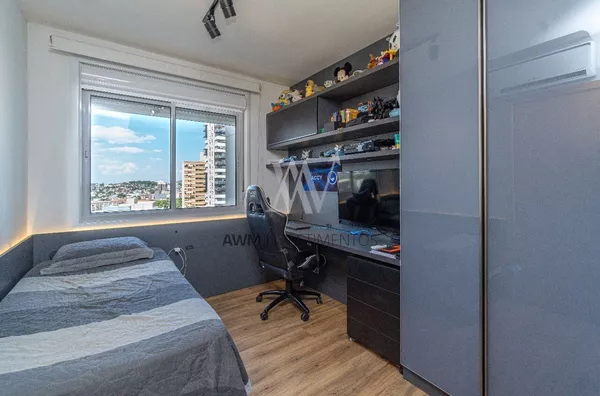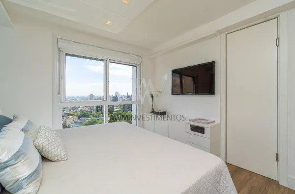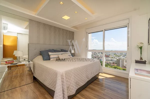 Awm Vende Apartamento de 126m², localizado em um andar alto, com vista panorâmica da cidade e do deslumbrante pôr do sol sobre o Guaíba. O imóvel conta com três suítes espaçosas, sendo uma delas uma suíte master com closet e amplo banheiro. O living extenso com um janelão oferece uma entrada generosa de luz natural e uma vista espetacular, além de contar com lareira e churrasqueira.