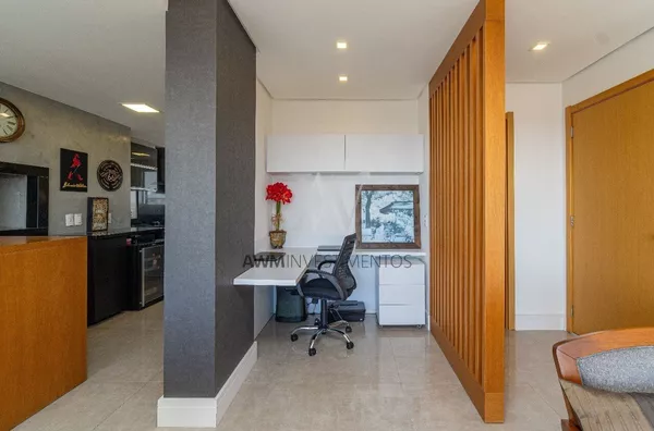 O imóvel é semimobiliado, com aproveitamento inteligente de todos os ambientes, possui cozinha e área de serviço separadas, além de duas vagas de garagem.