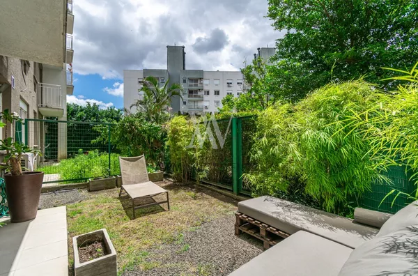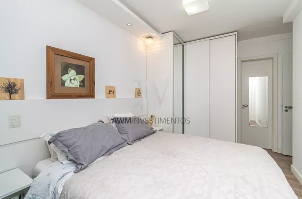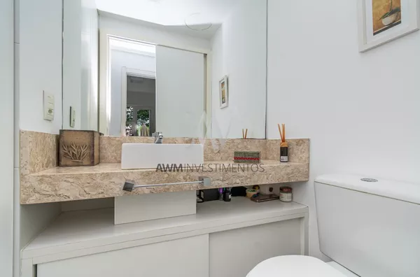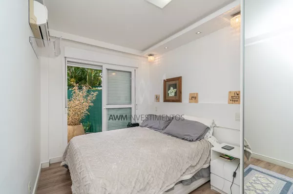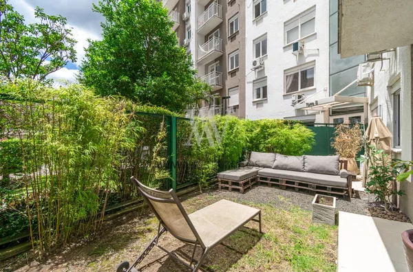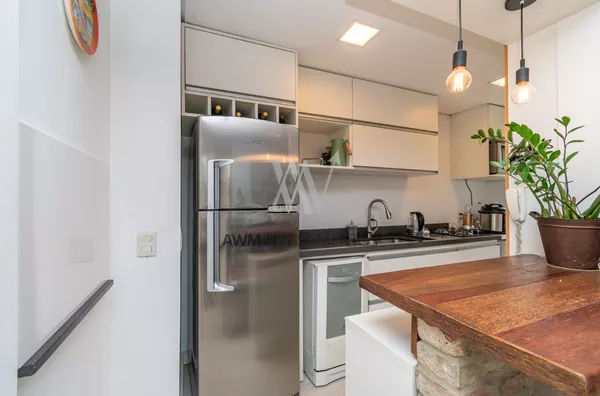 Awm Vende Garden, 54m² de apartamento + 38m² de jardim privativos, com 2 dormitórios (1 suíte), e mais 1 banheiro social. 1 vaga de garagem escriturada. O imóvel possui um belo pátio, churrasqueira, gás central, piso porcelanato e móveis planejados sob medida, cozinha em conceito aberto e uma ótima posição solar (manhã).