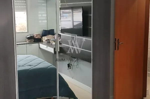 Awm Vende apartamento de 2 quartos totalmente reformado, com acabamento moderno, piso novo, azulejos atualizados, elétrica revisada, rebaixo em gesso decorativo, móveis sob medida nos quartos, cozinha e escritório, otimizando espaço e trazendo praticidade.