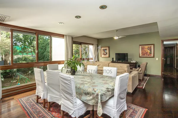 Awm Vende Este apartamento espaçoso oferece uma agradável sensação de casa, com ambientes bem distribuídos e iluminados. São 278m² privativos, distribuídos em três dormitórios, incluindo uma suíte e uma suíte master com closet, que proporcionam conforto e privacidade. O amplo living, dividido em quatro ambientes integrados à varanda, é banhado por luz natural e oferece uma vista acolhedora das copas das árvores, com o sol da manhã iluminando suavemente o espaço. A sala de jantar compartilha essa atmosfera tranquila, com vista para o verde ao redor.