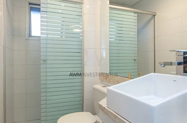 Awm Vende Excelente apartamento de 68 metros, 02 dormitórios, sendo 01 suíte, living integrado, cozinha americana, churrasqueira, esquadria piso teto. Apartamento com excelente posição solar, vista deslumbrante para o por do sol. Conta duas vagas de garagem (box duplo)