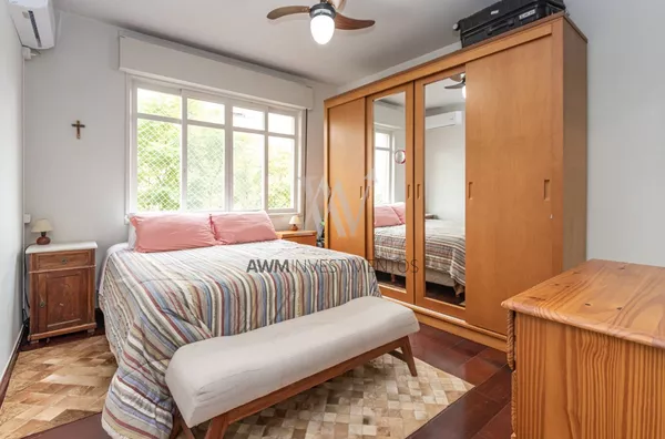 Awm Vende apartamento de 110 m² é uma excelente opção para quem busca conforto, luminosidade e boa localização. Localizado em uma esquina tranquila, o imóvel conta com janelas amplas que proporcionam excelente entrada de luz natural, tornando todos os ambientes bem ensolarados e ventilados. O living é espaçoso, com dois ambientes e acesso a uma sacada, ideal para momentos de convivência. São três dormitórios de bom tamanho, sendo um deles uma suíte; um dos quartos conta ainda com sacada privativa. A cozinha é funcional e bem distribuída, com área de serviço separada e banheiro auxiliar, garantindo praticidade no dia a dia. O apartamento já conta com splits instalados na sala e nos dormitórios, oferecendo maior conforto térmico.