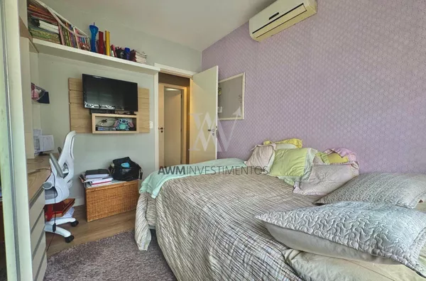 Awm Vende Apartamento 3 dormitórios, sendo uma suíte, dois banheiros, sacada com lareira, living para dois ambientes, cozinha ampla, área de serviço com sol da tarde e vaga coberta e escriturada. Os dormitórios recebem sol da manhã. Condomínio com duas portarias 24h (ruas Afonso Taunay e Atanásio Belmonte), zelador, piscina, salão de festas, academia, playground e bicicletário. Localizado a dois minutos dos shoppings Iguatemi e Bourbon Country, Unisinos, colégios Anchieta e Província,