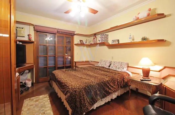 Awm Vende casa 4 amplos Dormitórios, sendo 1 Suíte- Suíte Master c/Closet e Banheiro c/Cuba Dupla, Box e Banheira- Banheiro dos demais dormitórios c/Cuba Dupla e Banheira- Sacada Terceiro piso:- Gabinete- Amplo Depósito100% mobiliada piso:- Hall de Entrada- Estar Social- Sala de Jantar- Estar Íntimo com Lareira; Lavabo- Ambiente de Churrasqueira- Salão de Festas- Ampla Copa Cozinha- Quarto de Empregada; Banheiro de Empregada- Lavanderia- Garagem p/estacionar 4 carros- Pátio Social c/Jardim (com espaço para piscina)-