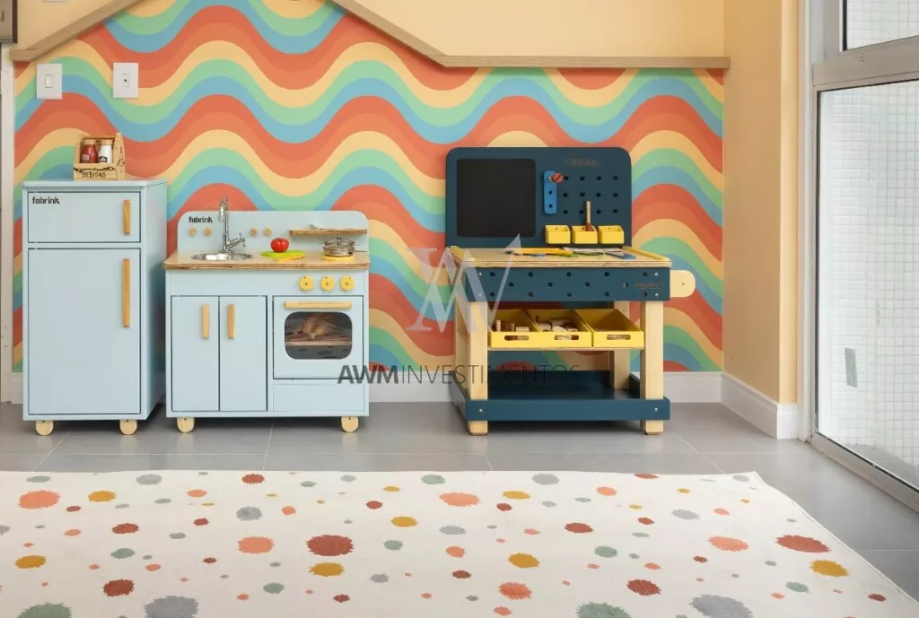 Possui salão para festas e eventos, piscina, academia, espaço Kids,