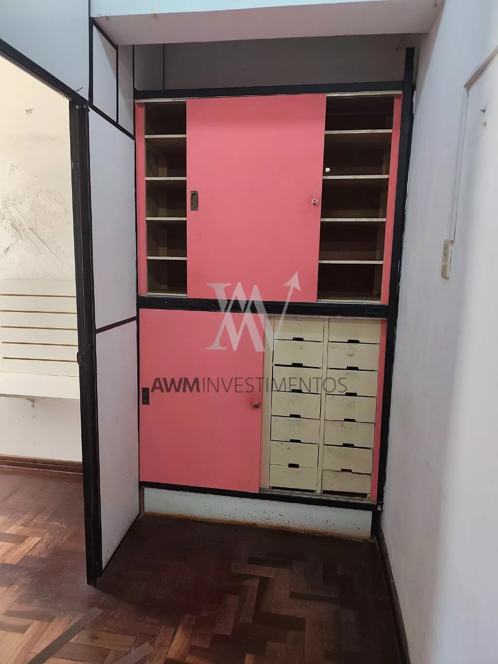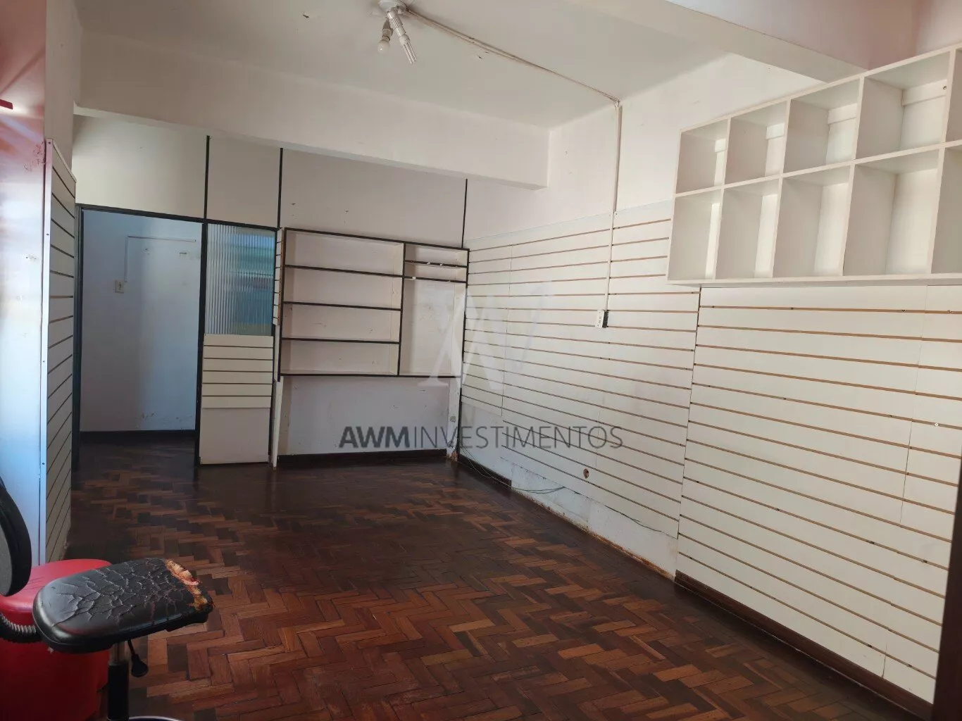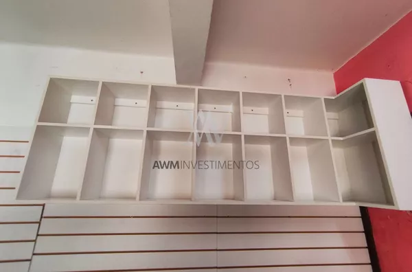 Awm Aluga sala comercial em Galeria tradicional do Centro , com vista definida , piso parquet. Pronta, com divisória , prateleiras .