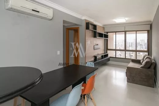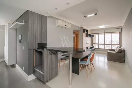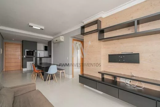 Awm Vende, Apartamento semi-mobiliado com 67m², 2 quartos e 2 vaga de garagem, no último andar, com vista espetacular, sol da tarde. 1 suíte, living para 2 ambientes, cozinha americana com churrasqueira, banheiro social, área de serviço. Condomínio com infra completa de lazer e baixo custo condominial. É composto por churrasqueira, elevador, fitness, gás central, medidor de água individual, interfone, piscina adulta e infantil, playground, portaria 24h, quadra poliesportiva, quiosque, sala de jogos e salão de festas