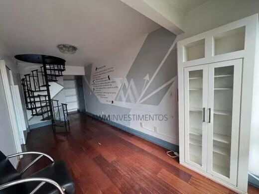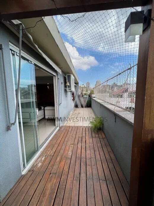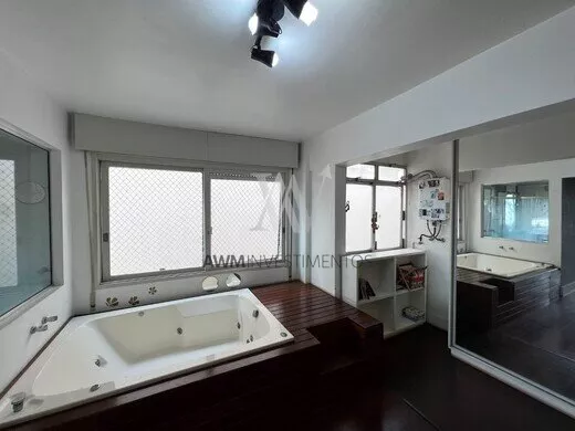 Awm Vende, apartamento duplex de 158 m2 privativos de 2 dormitórios, transformada atualmente em 1 única suíte máster com closet e banheira hidro. No pavimento superior possui cozinha, área de serviço, sala, dormitório hóspedes (ou home office) e terraço com churrasqueira.