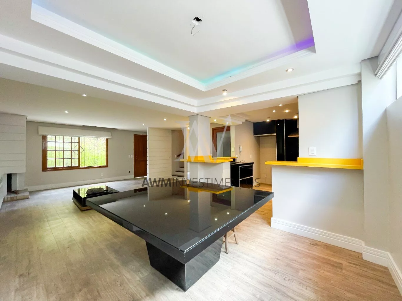 Os pontos altos da parte interna desse imóvel são, uma ampla e equipada cozinha que se integra ao living de dois ambientes, formando um ambiente acolhedor que dá muitas possibilidades de socialização. O outro ponto de destaque é a suíte com Jacuzzi, lareira e split, que segundo o proprietário, era o local de maior uso pela família! Ao lado da suíte há a possibilidade de um grande closet ou ainda um amplo escritório.