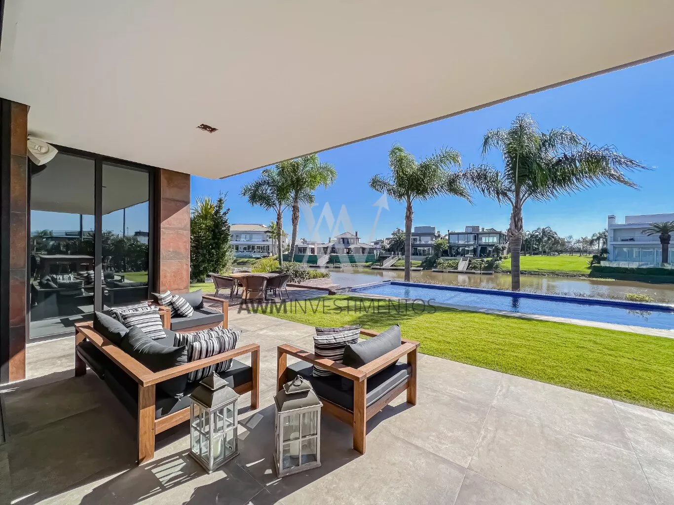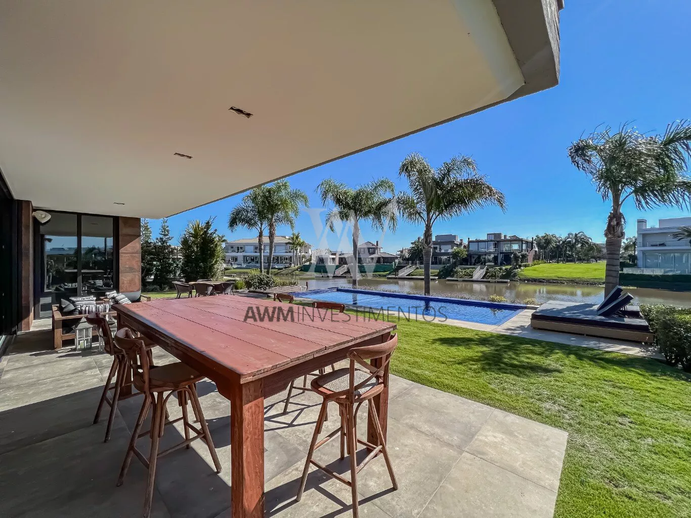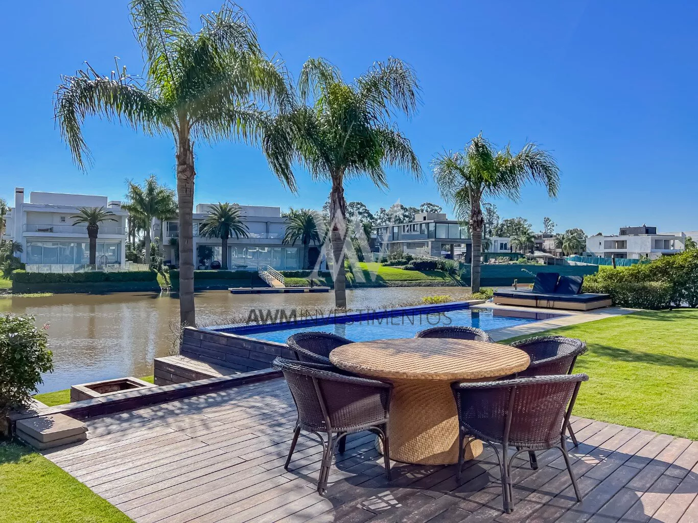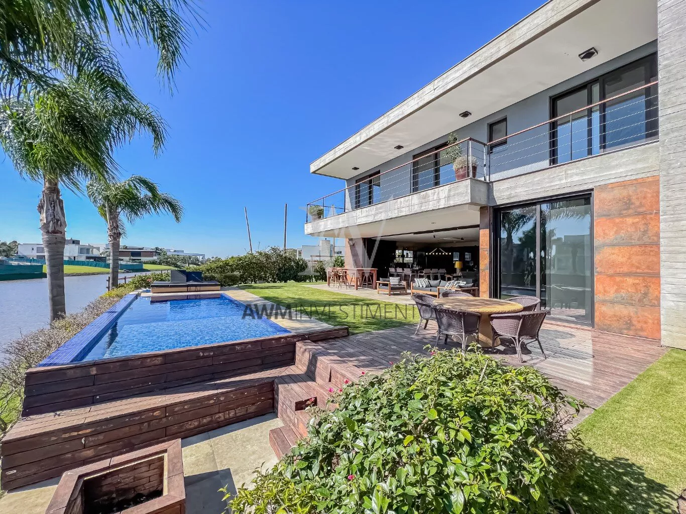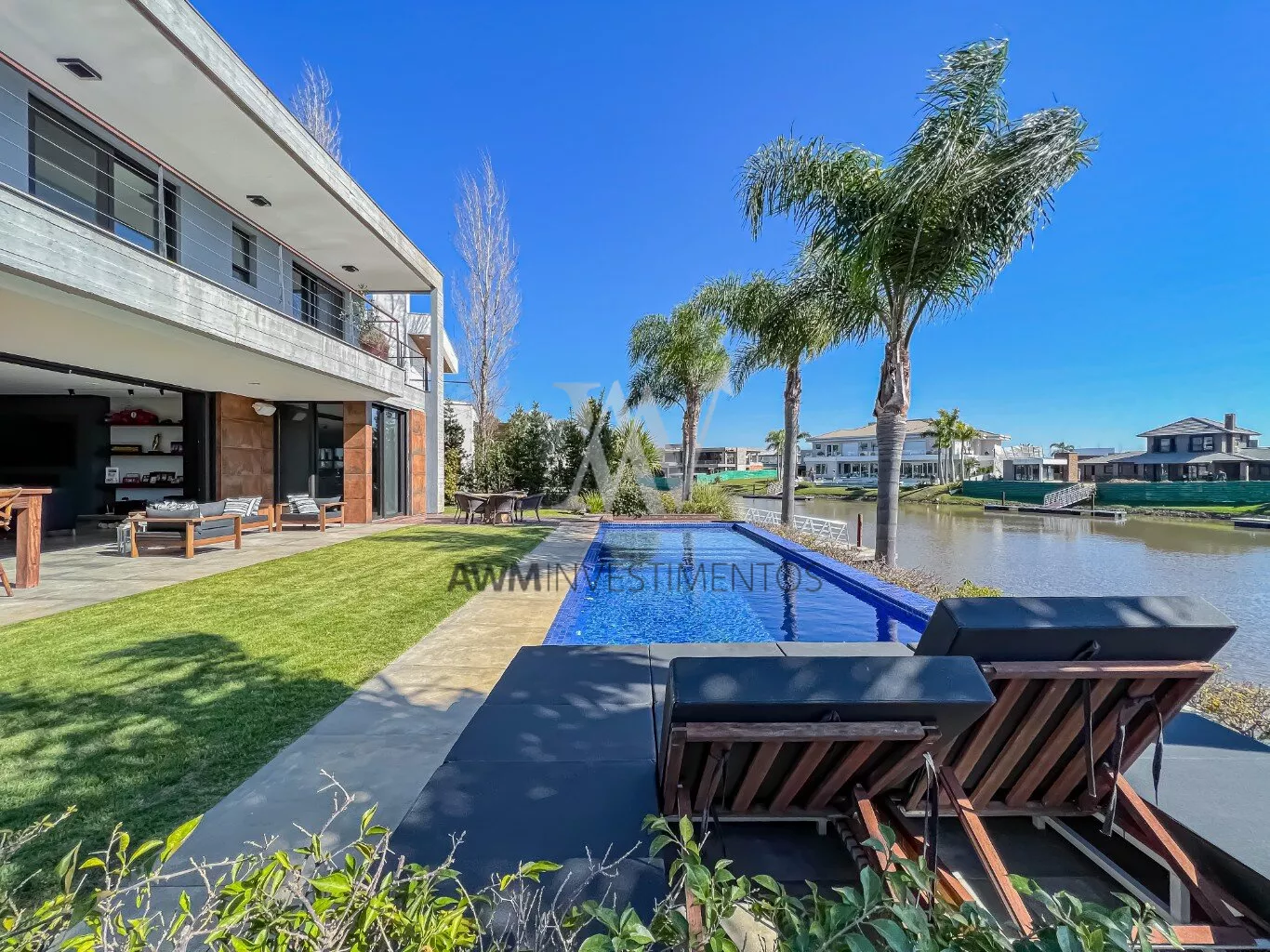 A casa está a frente do rio, onde possui acesso junto ao canal navegável.