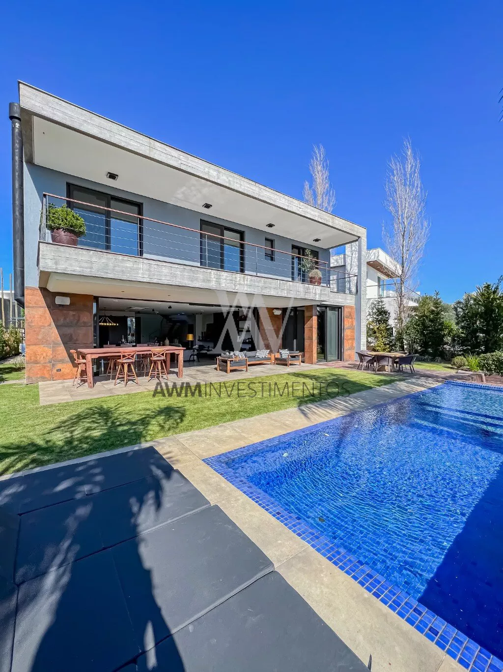 No piso térreo do imóvel temos suíte principal com acesso direto ao jardim, Closet e Jardim de inverno. Ainda no primeiro pavimento living amplo com lareira, cozinha, espaço gourmet com churrasqueira, lavabo, lavanderia, dependência de empregada completa, despensa. No 2° pavimento há 04 suítes, além de sala de estar e 02 grandes varandas.
