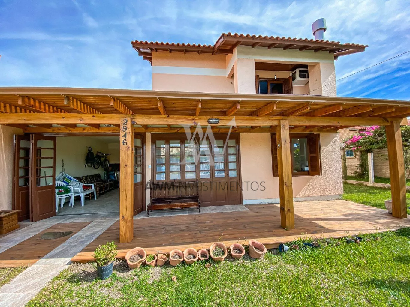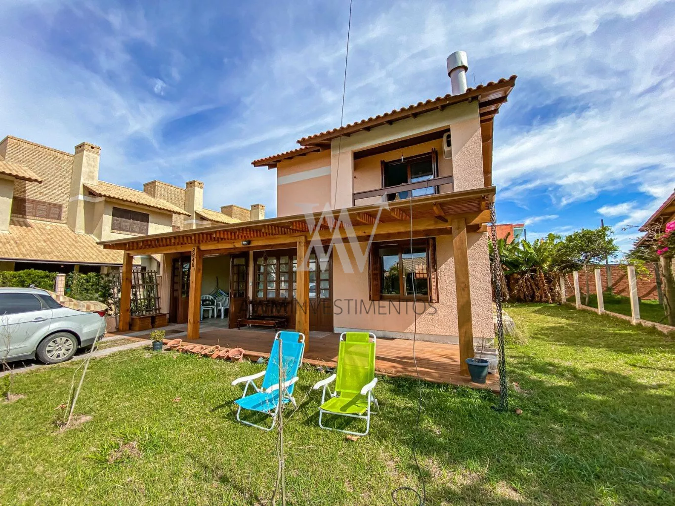 Awm Vende Casa 02 pisos , com 03 dormitórios sendo 01 com sacada , sala 02 ambientes com lareira , cozinha americana, totalmente mobiliada , garagem com churrasqueira , Amplo pátio gramado, bem próximo ao Mar.