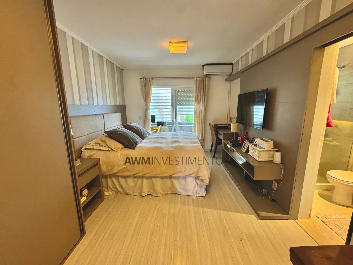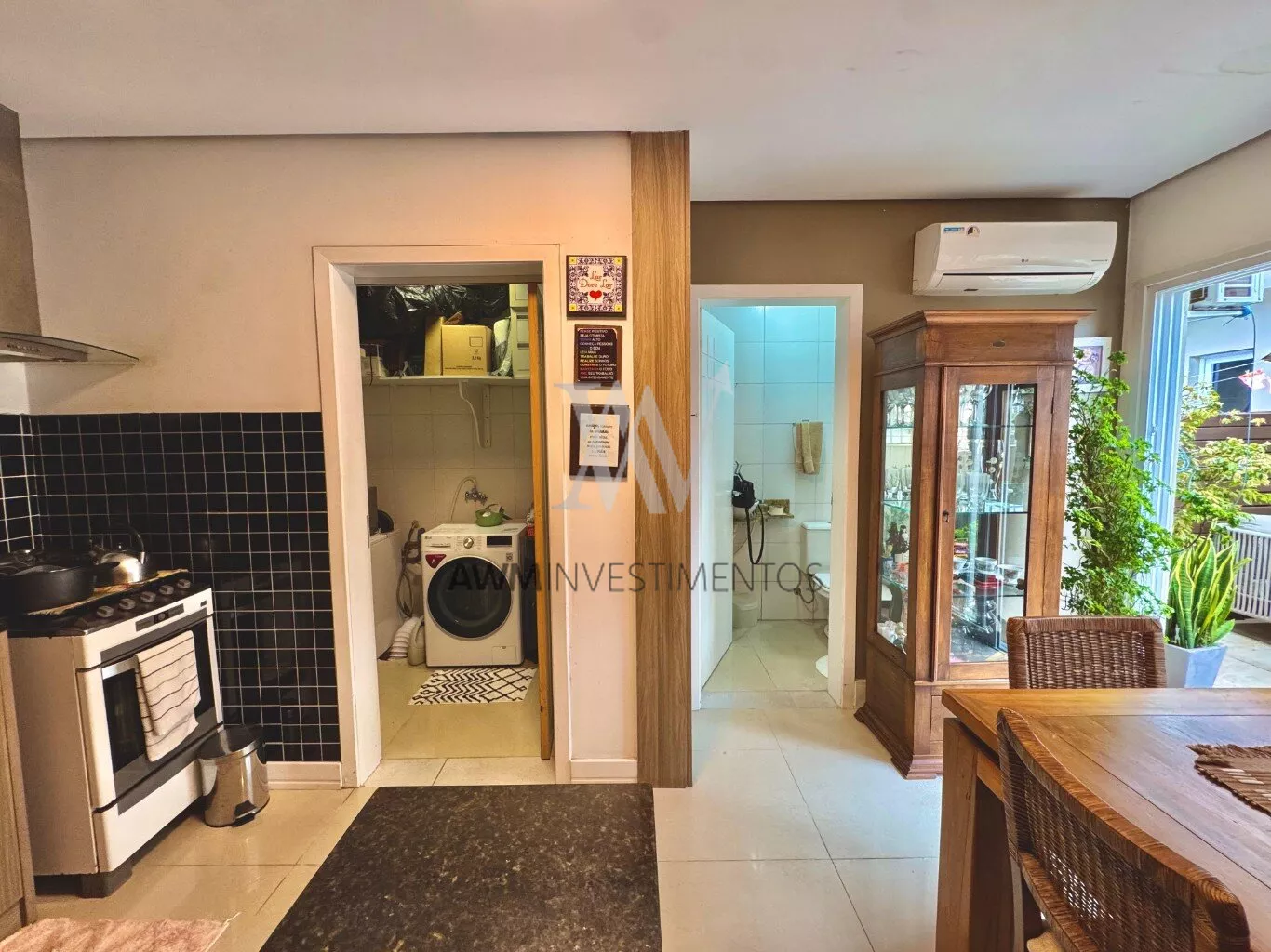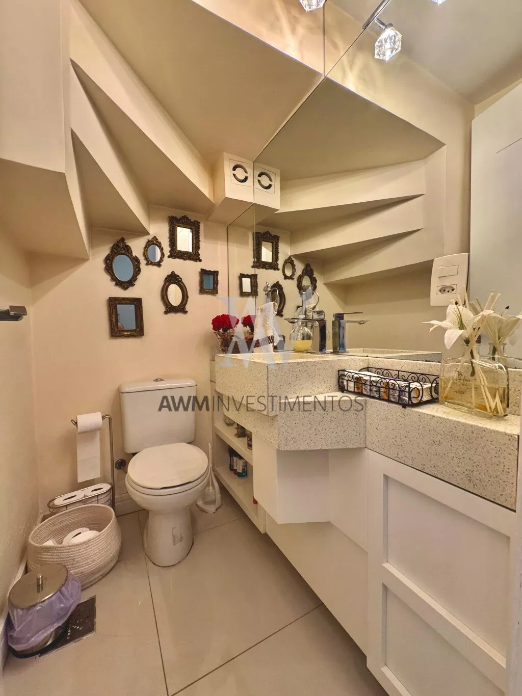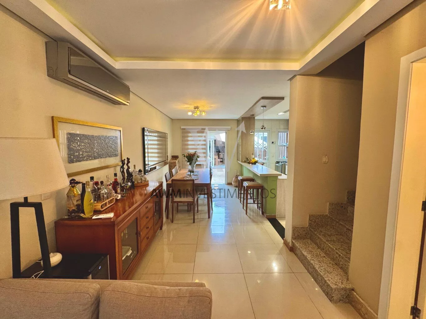 Awm Vende com três dormitórios, sendo uma suíte ampla com espaço extra transformado em home office perfeito para quem trabalha de casa ou precisa de um cantinho de concentração. No térreo, os ambientes são integrados, oferecendo living com lareira, sala de jantar, lavabo e cozinha planejada com móveis Finger, que valorizam o uso inteligente do espaço.