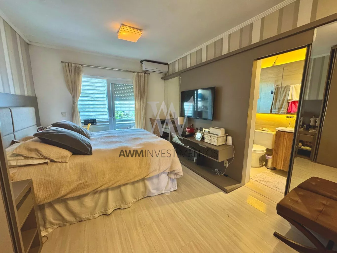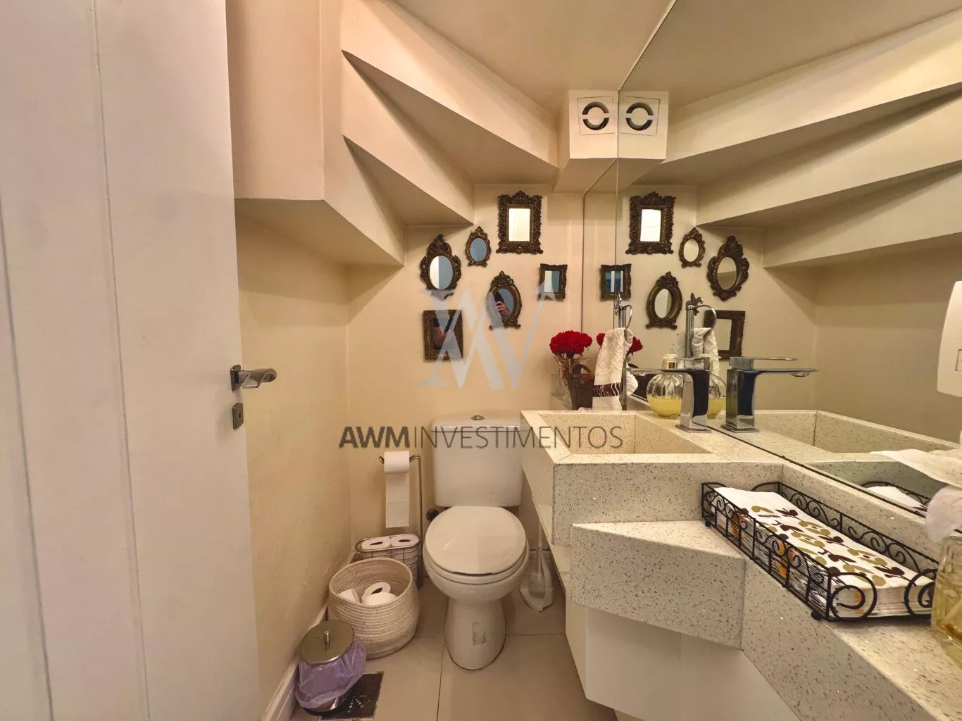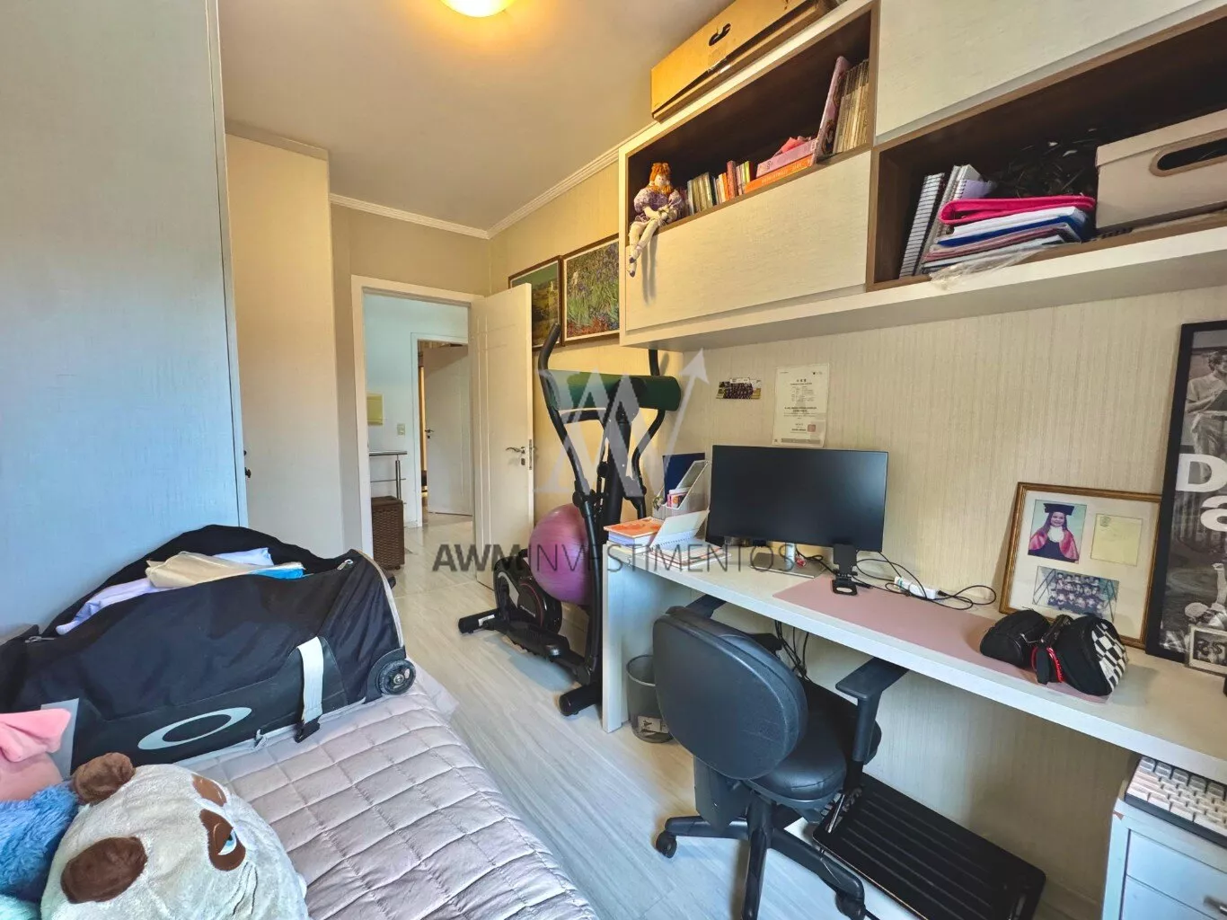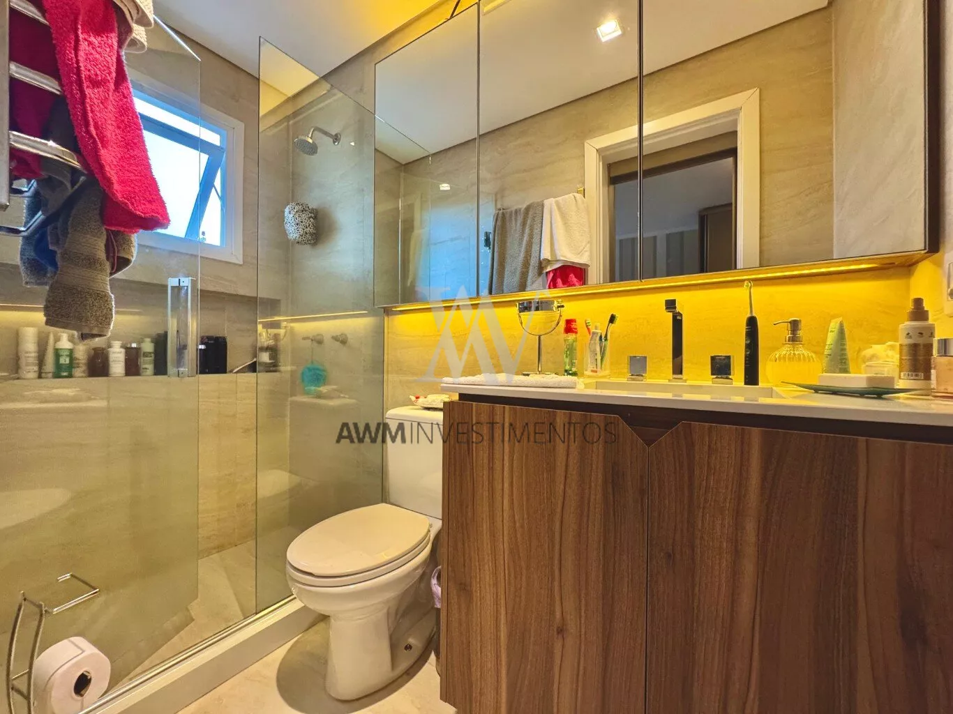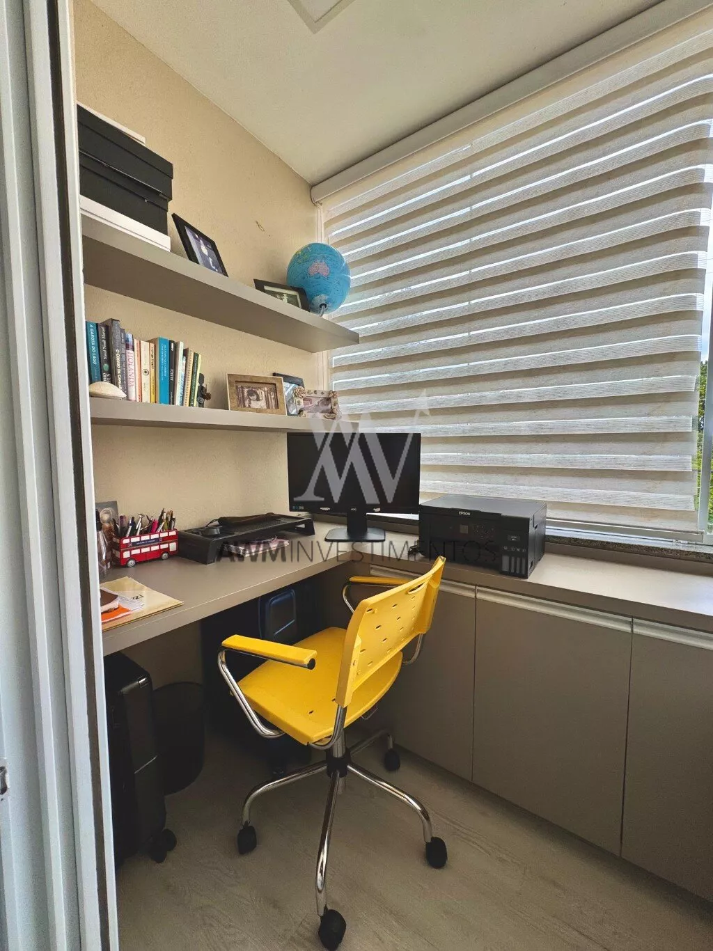 Awm Vende com três dormitórios, sendo uma suíte ampla com espaço extra transformado em home office perfeito para quem trabalha de casa ou precisa de um cantinho de concentração. No térreo, os ambientes são integrados, oferecendo living com lareira, sala de jantar, lavabo e cozinha planejada com móveis Finger, que valorizam o uso inteligente do espaço.