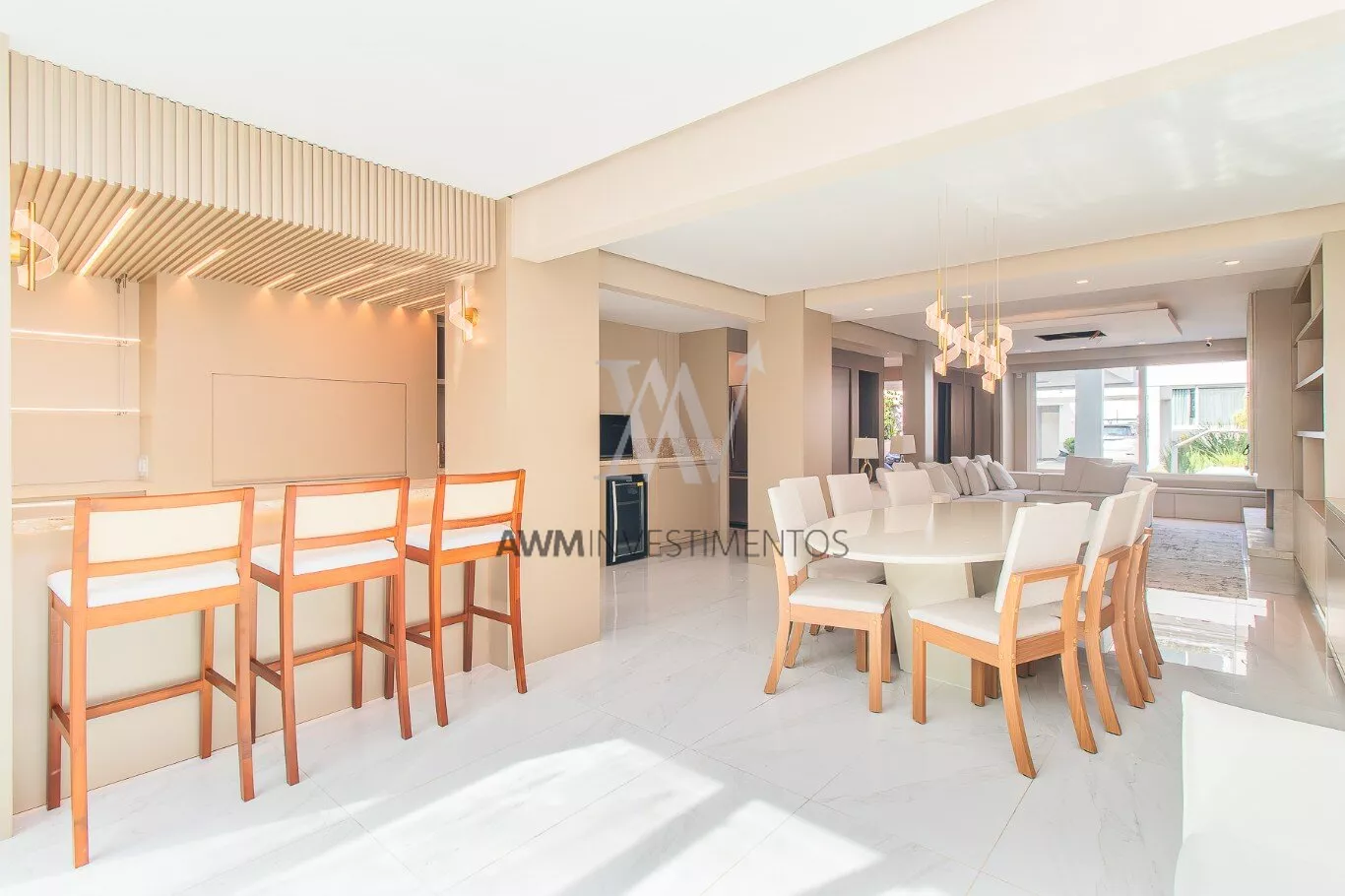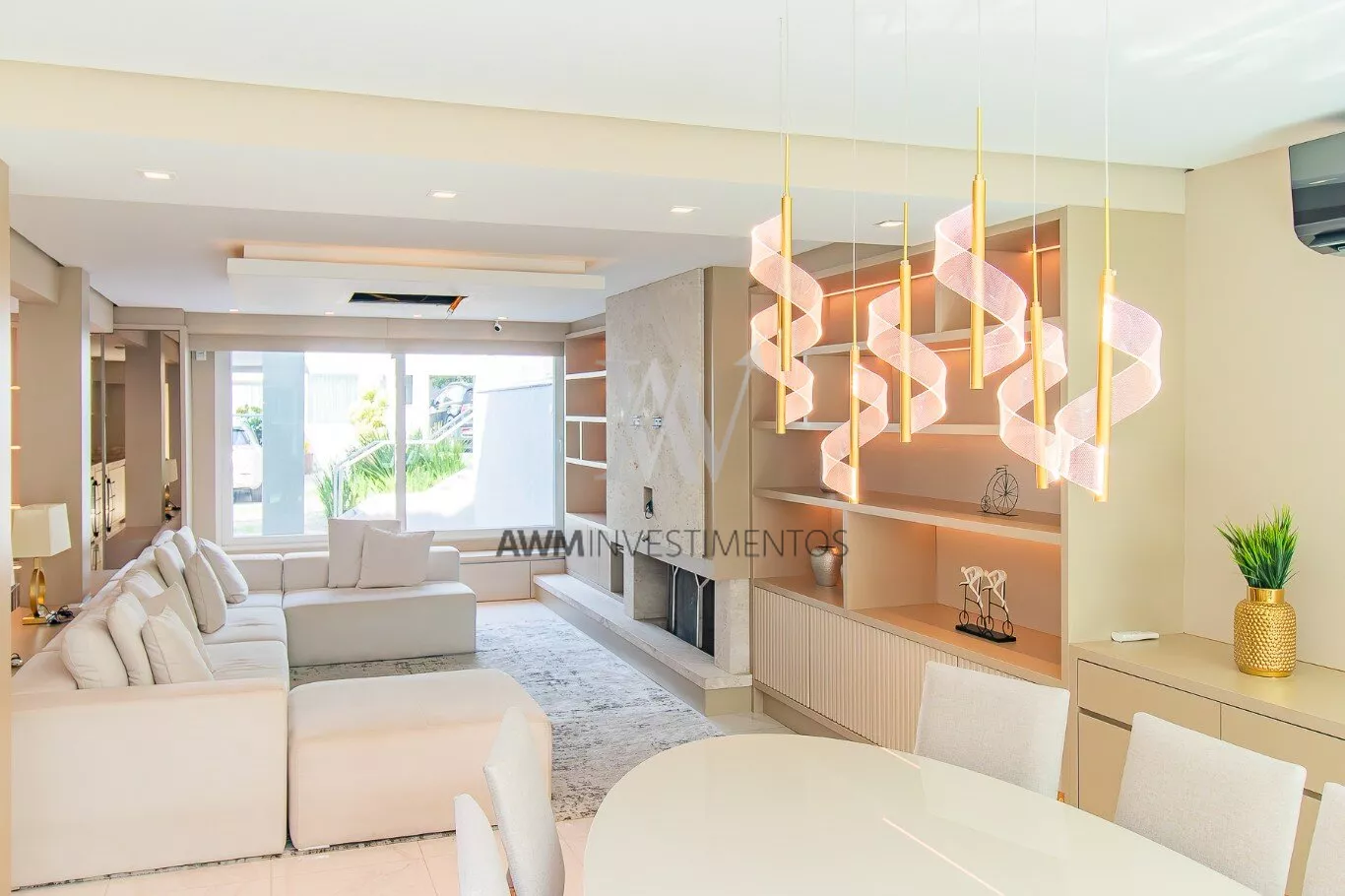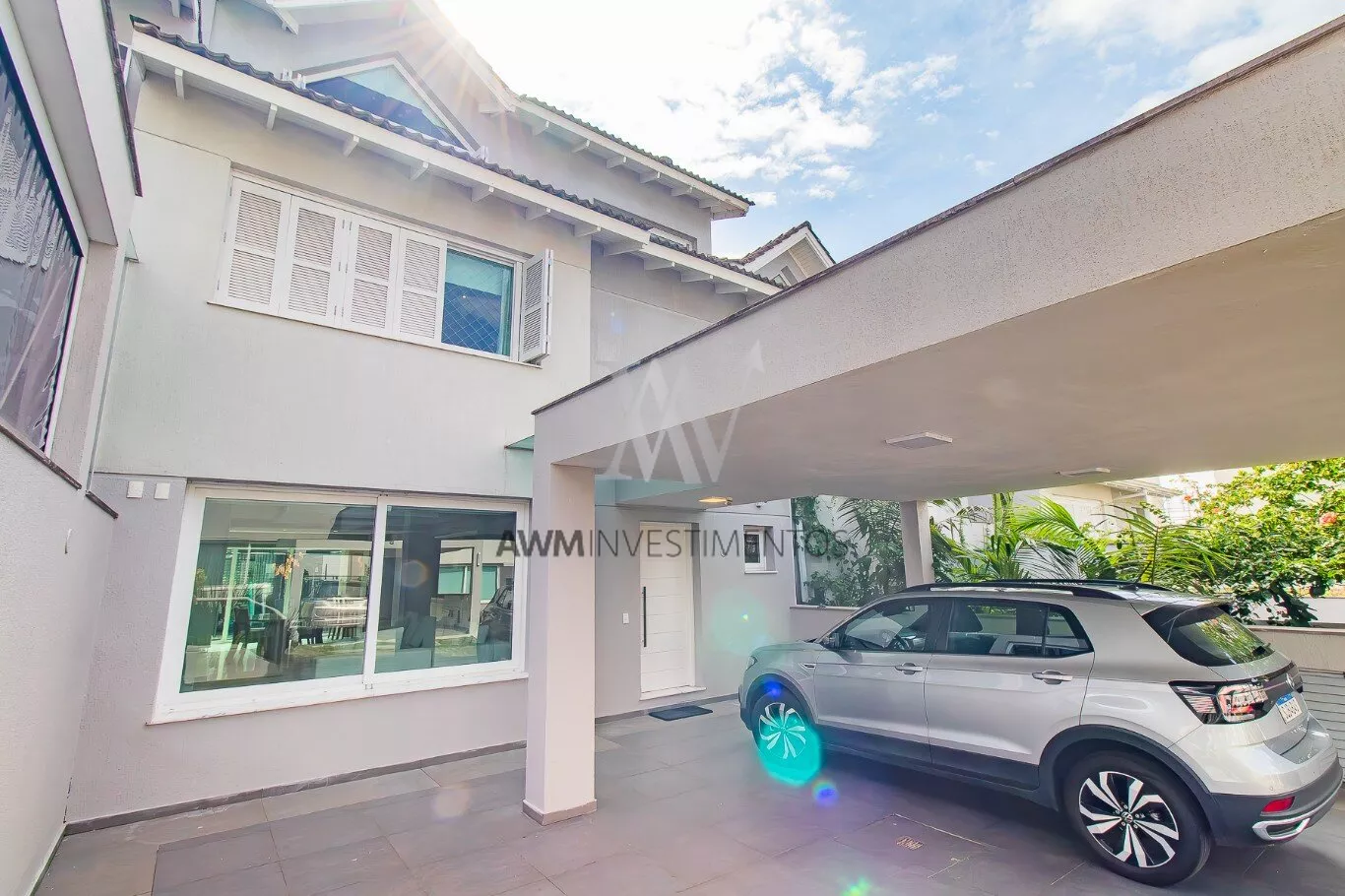 Awm Vende Casa em condomínio fechado com 4 suítes, sendo uma suíte master com banheira e closet, hall de entrada com lavabo, amplo living para 03 ambientes, com lareira, espaço gourmet com móveis planejados e churrasqueira, cozinha e área de serviço/lavanderia independentes, subsolo que integra área íntima, sala de jogos e escritório, além de um lavabo, sauna, varanda coberta e privativa aos fundos do imóvel, além de duas vagas de garagem cobertas. Condomínio com portaria virtual,