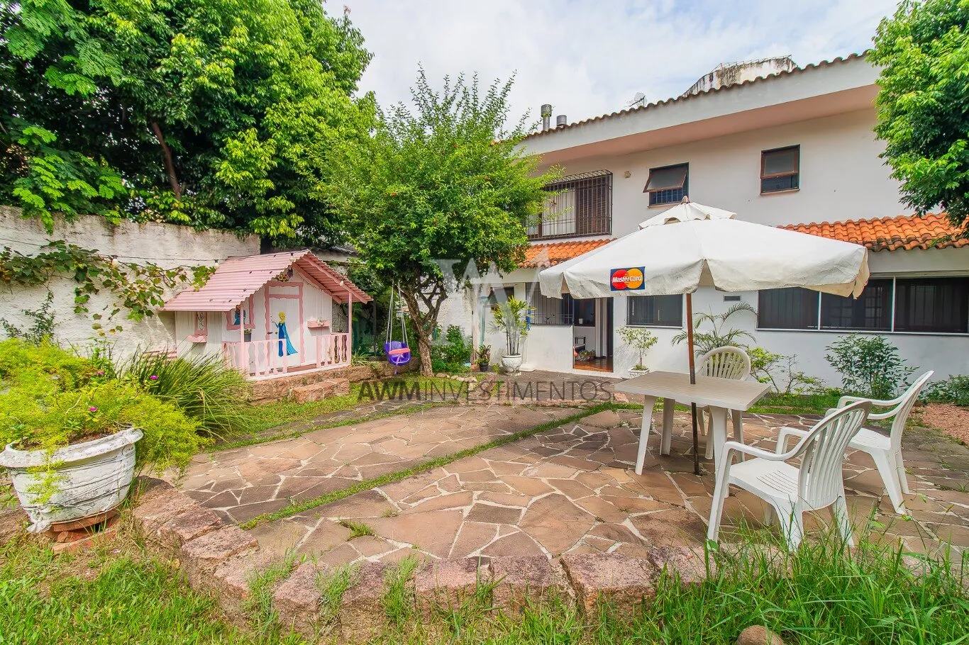 Awm Vende Residência, imponente e sofisticada, com hall de entrada com lavabo, amplas salas em disponíveis: estar, jantar e estar com lareira. Copa-cozinha. Lavanderia com dependência de empregada e despensa. 3 dormitórios, sendo 1 suíte com hidro e amplo sacadão, todos os quartos com bela vista panorâmica do Parque Germânia e de todo o Jardim Europa. Estar íntimo com lareira, entre os quartos, que pode ser convertido no 4º dormitório. Banheiro Social. Amplo pátio gramado com várias árvores frutíferas. Sensacional galpão rústico, com estar, salão com churrasqueira e bar, banheiro e ampla despensa/depósito. Subsolo com ampla garagem para 3 carros, 2 depósitos e outra churrasqueira. Porta de entrada e balaústres/gradis