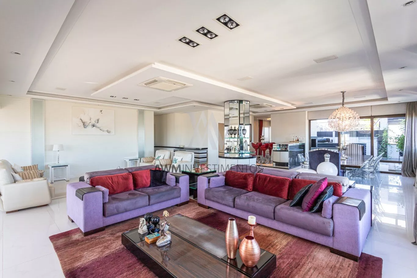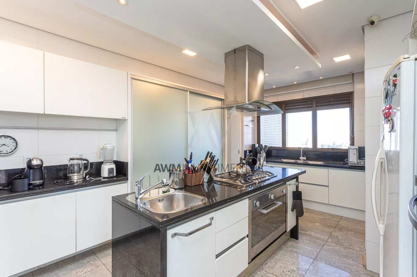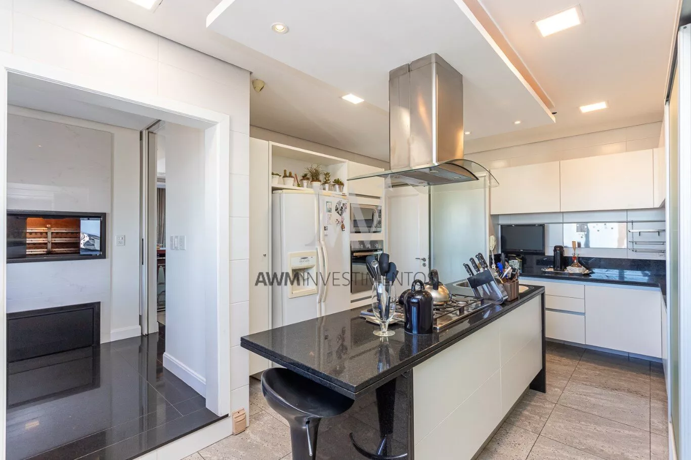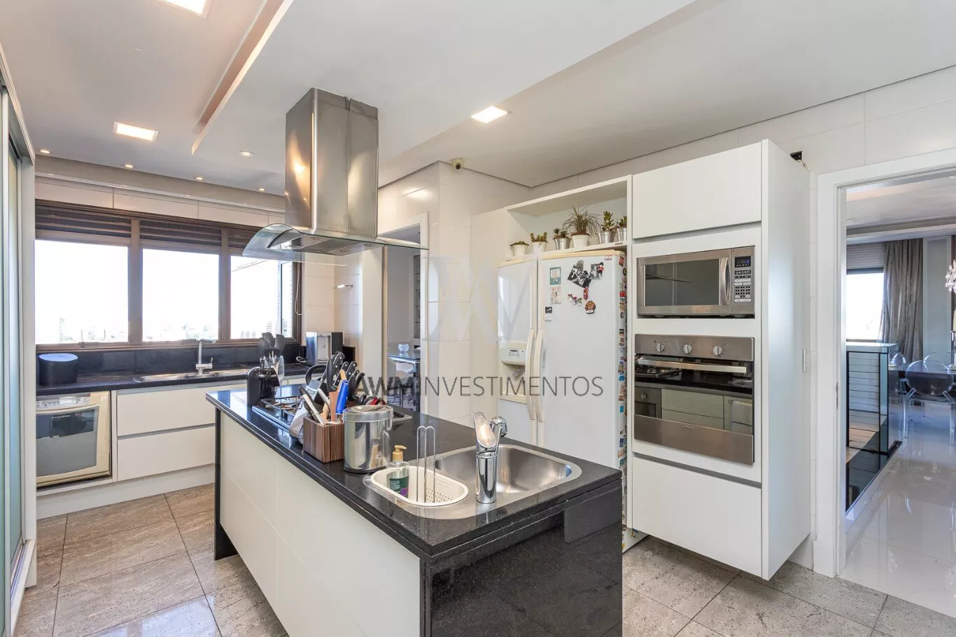 Na area intima temos ampla cozinha/copa com ilha, lavanderia, despensa, entrada de serviço, dependência completa, sala de cinema, escritório.