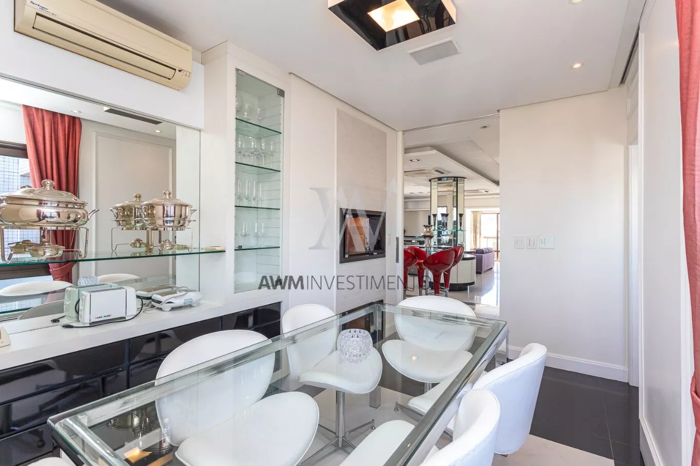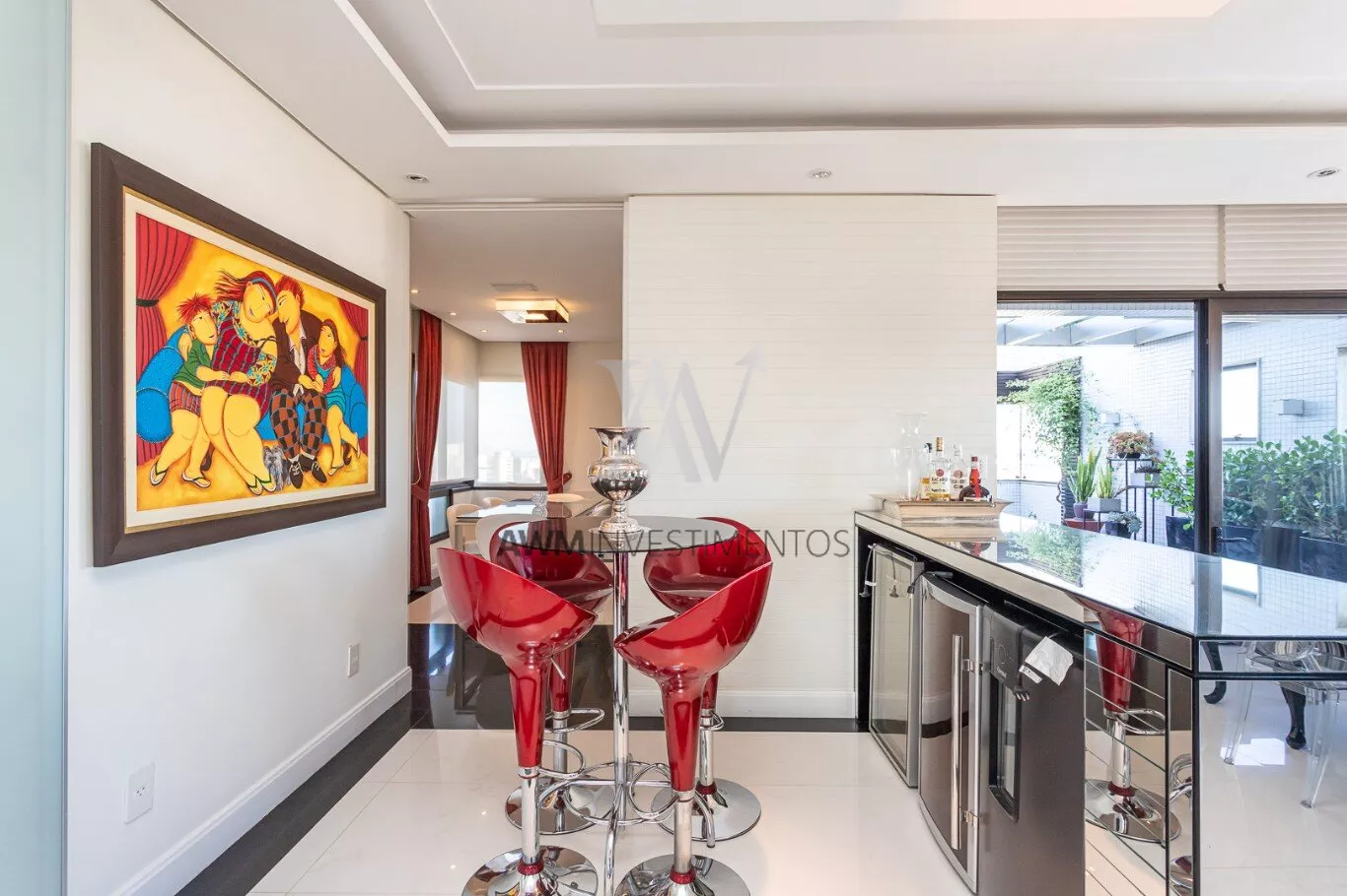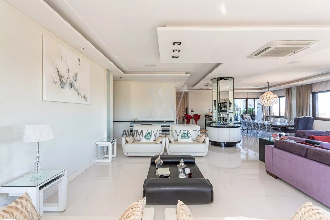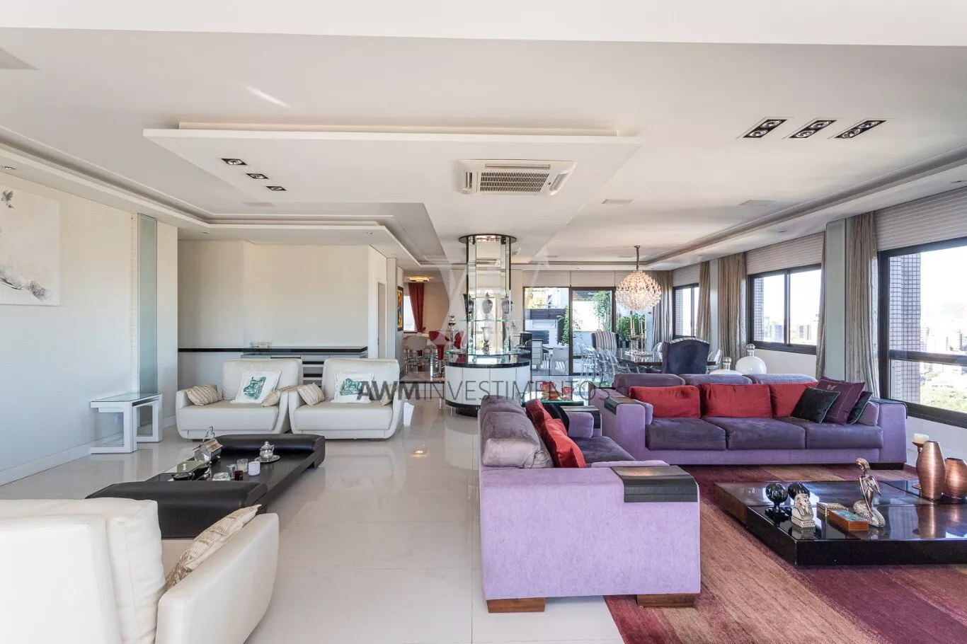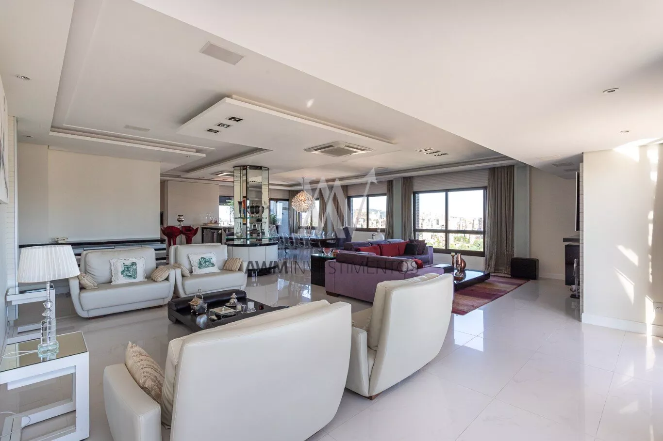 Na area intima temos ampla cozinha/copa com ilha, lavanderia, despensa, entrada de serviço, dependência completa, sala de cinema, escritório.