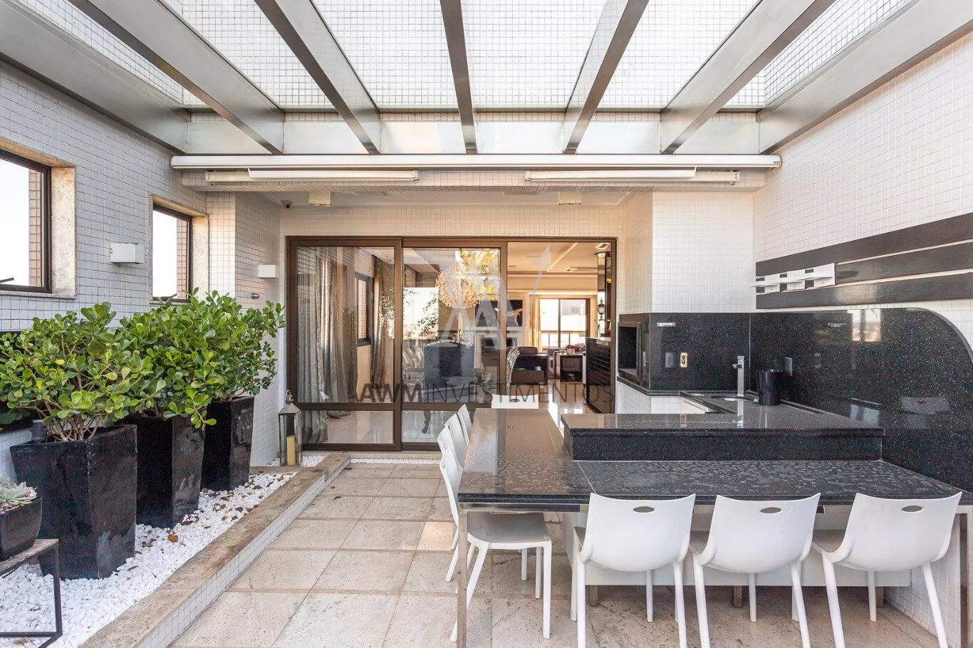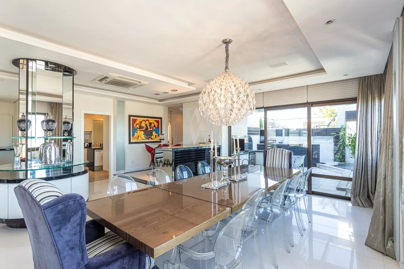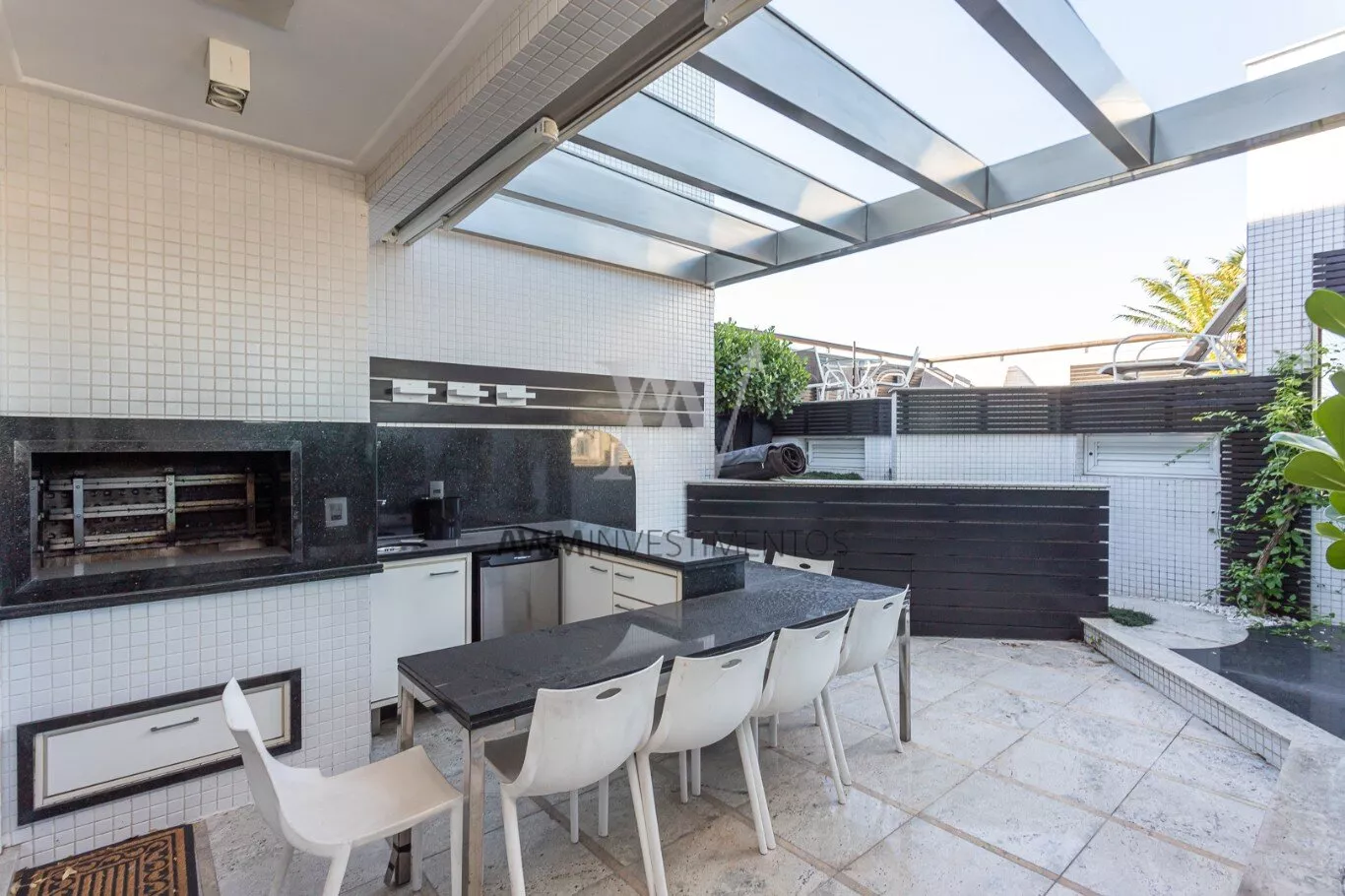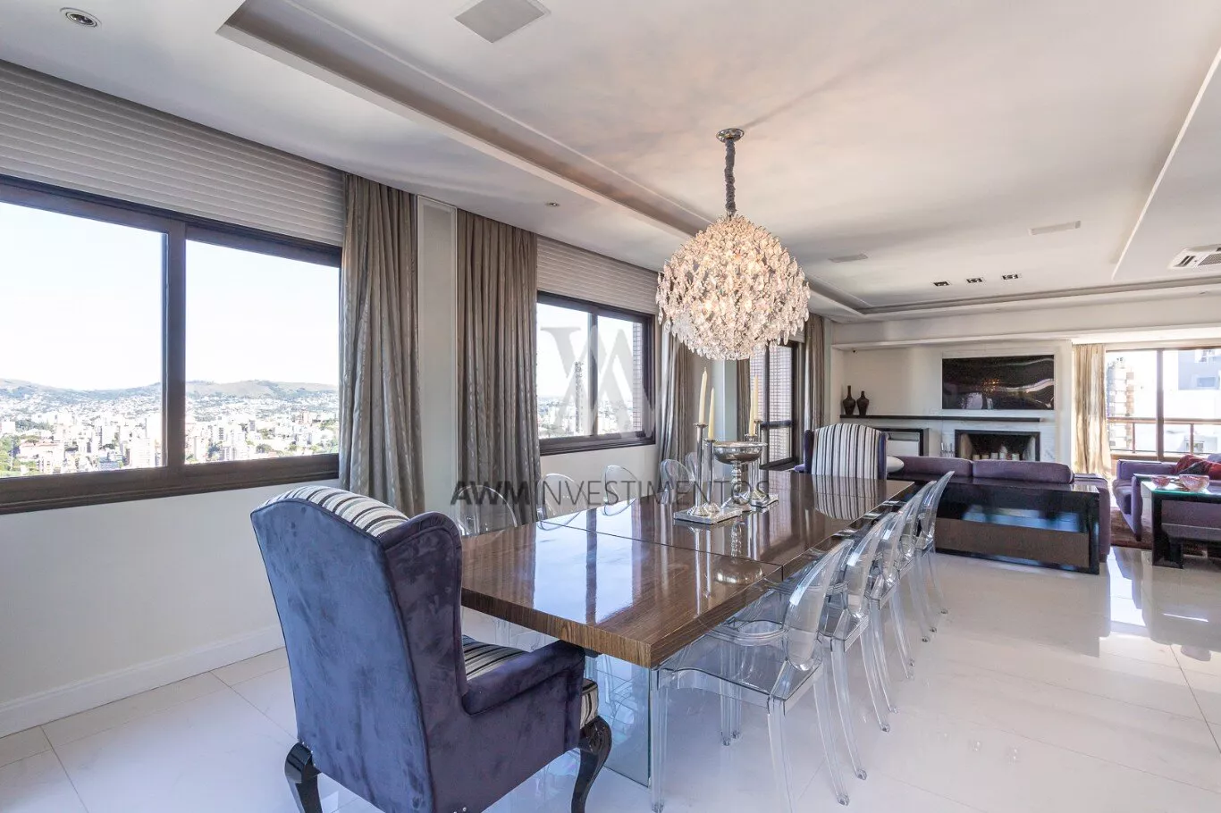 Na area intima temos ampla cozinha/copa com ilha, lavanderia, despensa, entrada de serviço, dependência completa, sala de cinema, escritório.