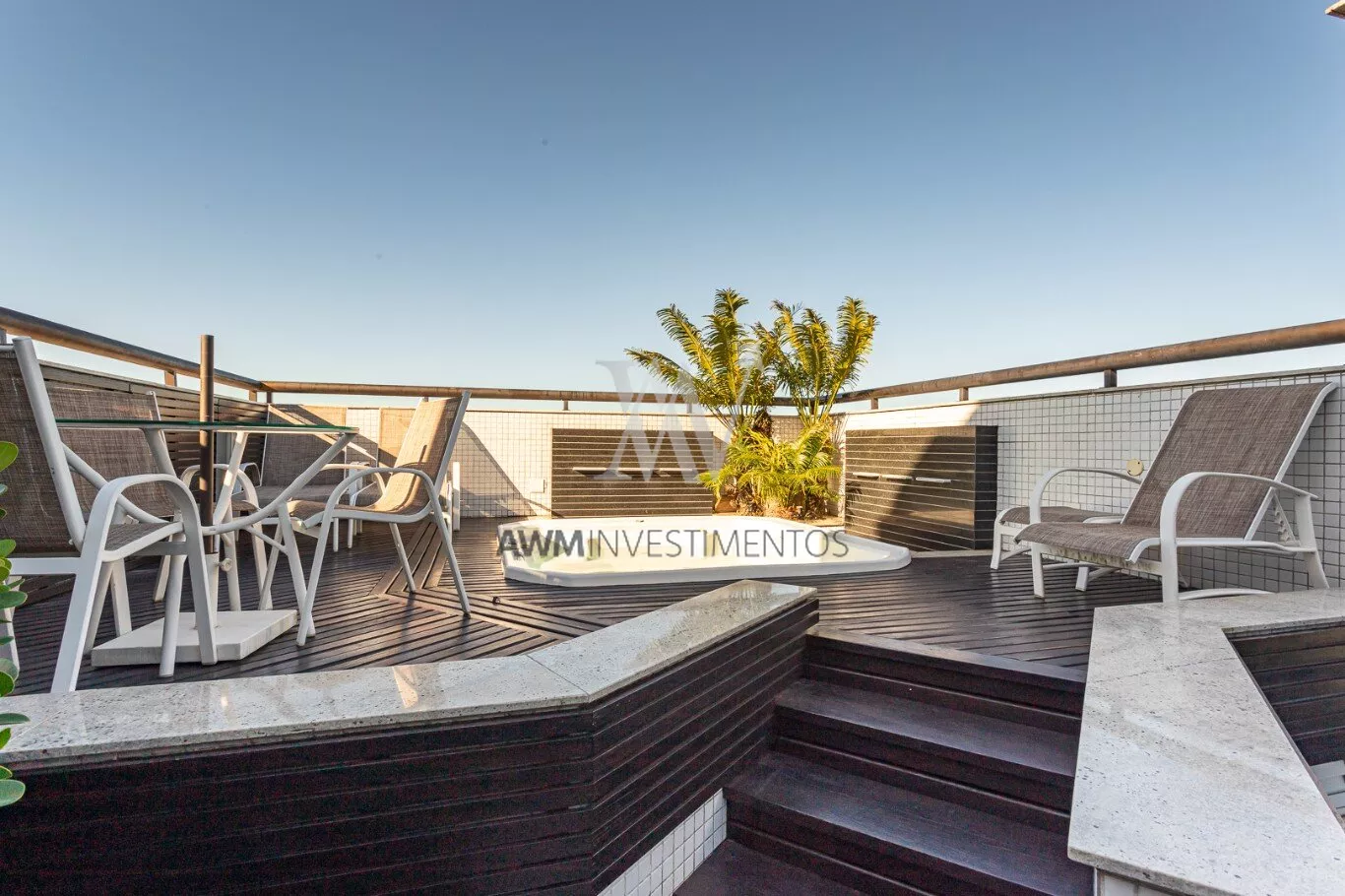 Awm Vende Cobertura com 04 dormitórios, 4 suítes sendo duas delas com closet e hidromassagem. Imóvel amplo com total privacidade. Elevador privativo, hall, living para 5 ambientes, sala de estar com sacada e lavabo, sala de tv com lareira, sala de jantar, sala de churrasco, e area externa com churrasqueira parrillera e deck com Hidromassem.Todo apartamento possui sistema de automatização de iluminação e persianas e sistema de aspirador central.
