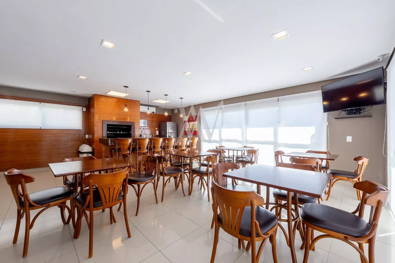 No living são dois ambientes integrados, sala de estar e jantar, cozinha com churrasqueira, lavabo e área de serviço.