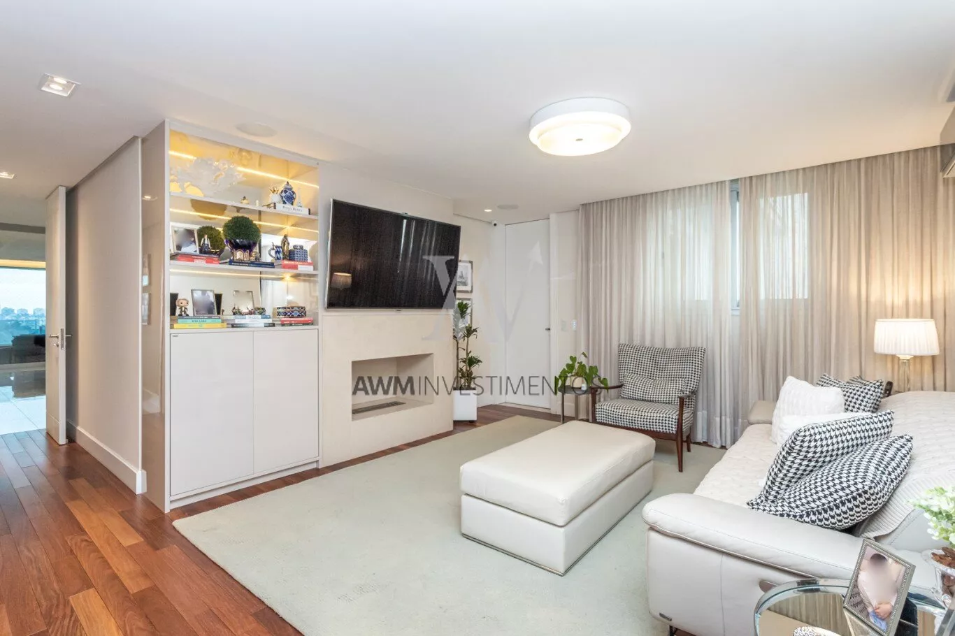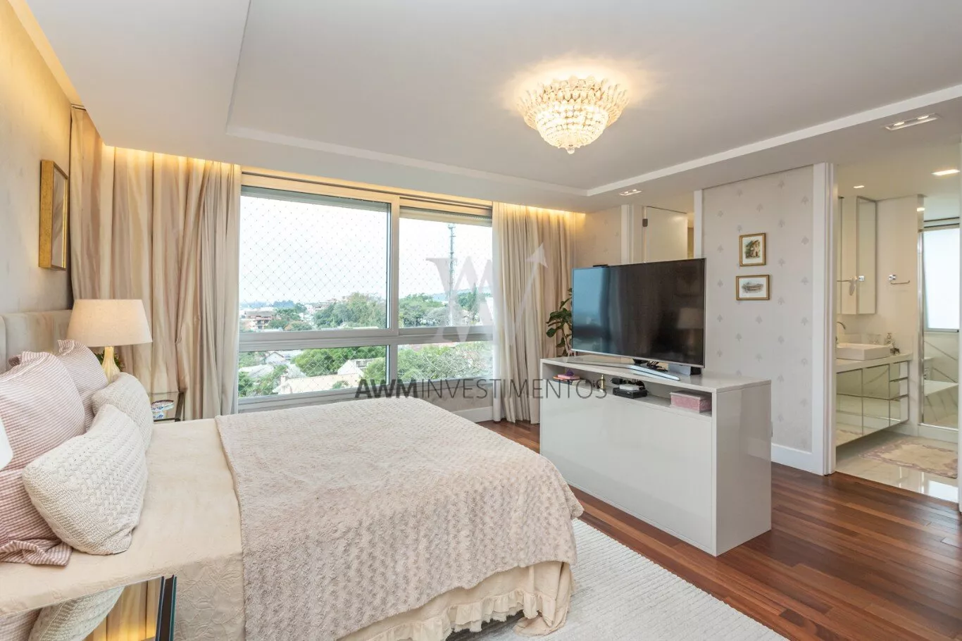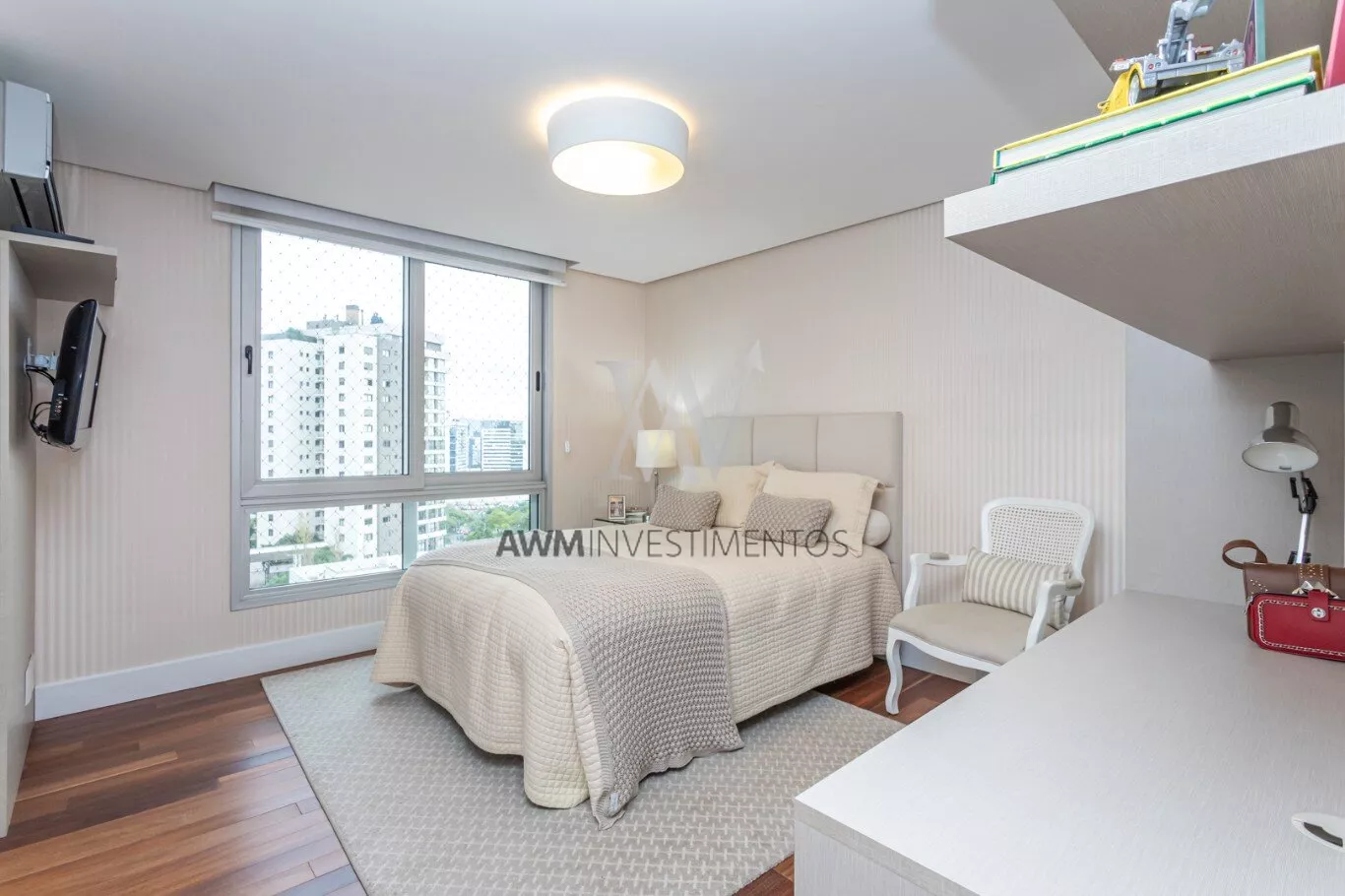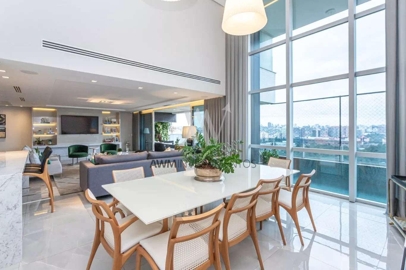 Awm Vende apartamento com 04 dormitórios , 4 suítes, sendo uma delas com jacuzzi e closet. hall privativo, living com pé direito duplo para 4 ambientes, espaço gourmet com bancada e churrasqueira, sala de jantar, sacada com piscina privativa com a melhor vista de Porto Alegre, sala de estar com lareira, lavabo, cozinha com acesso independente a área intima, entrada de serviço e dependência de empregada completa.