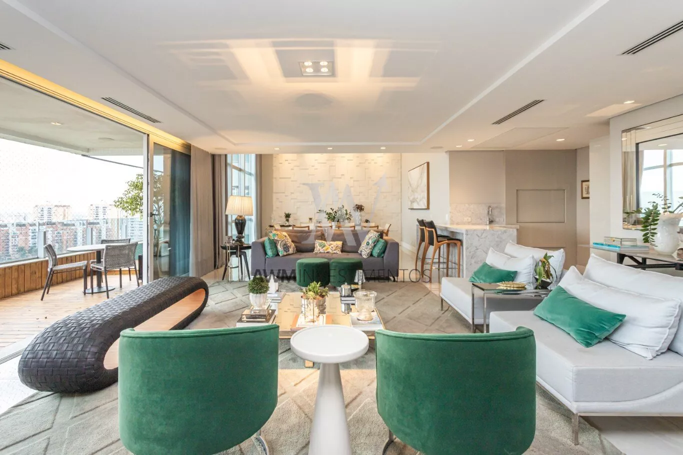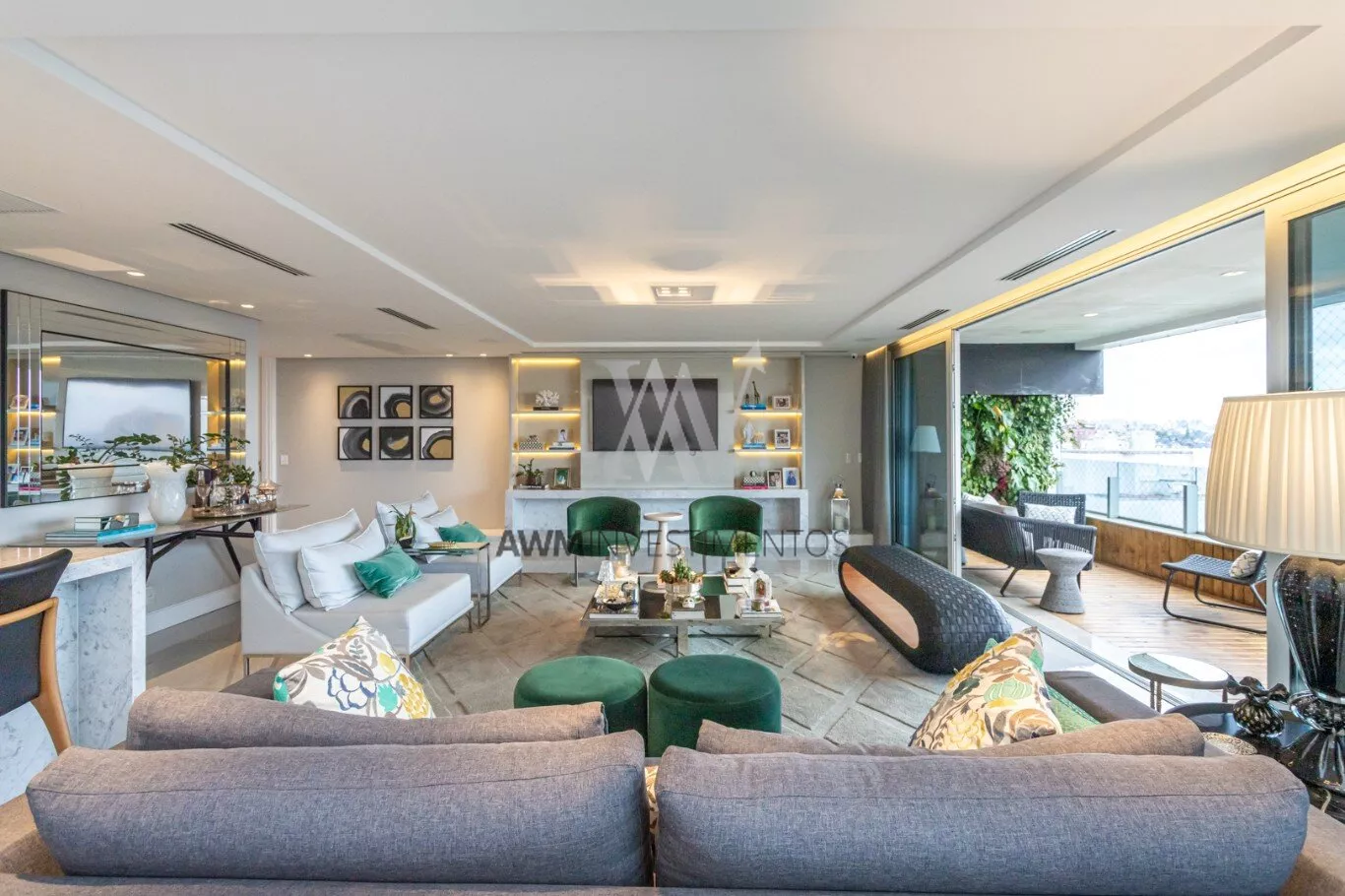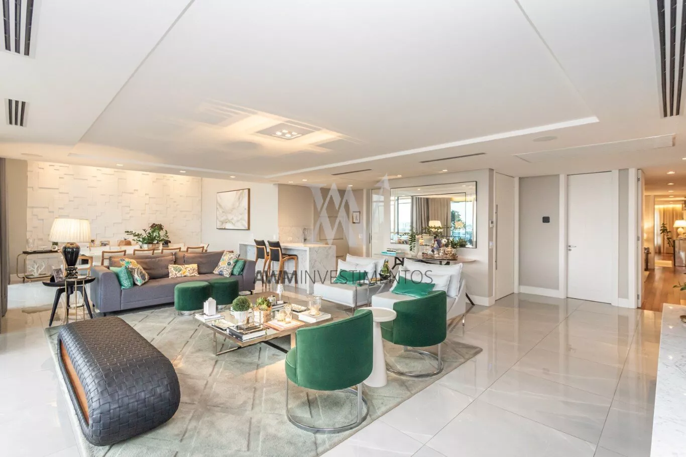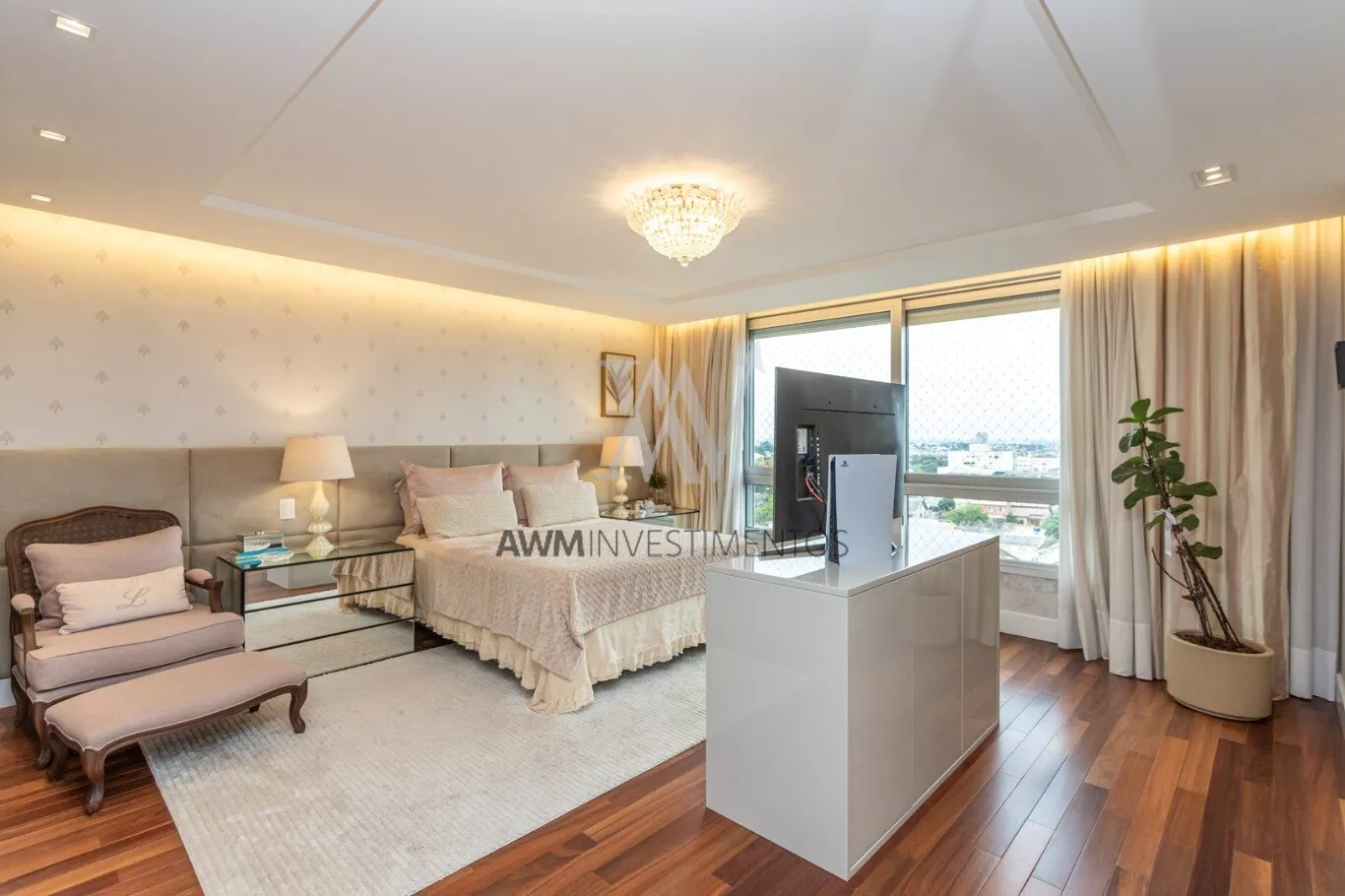 Awm Vende apartamento com 04 dormitórios , 4 suítes, sendo uma delas com jacuzzi e closet. hall privativo, living com pé direito duplo para 4 ambientes, espaço gourmet com bancada e churrasqueira, sala de jantar, sacada com piscina privativa com a melhor vista de Porto Alegre, sala de estar com lareira, lavabo, cozinha com acesso independente a área intima, entrada de serviço e dependência de empregada completa.