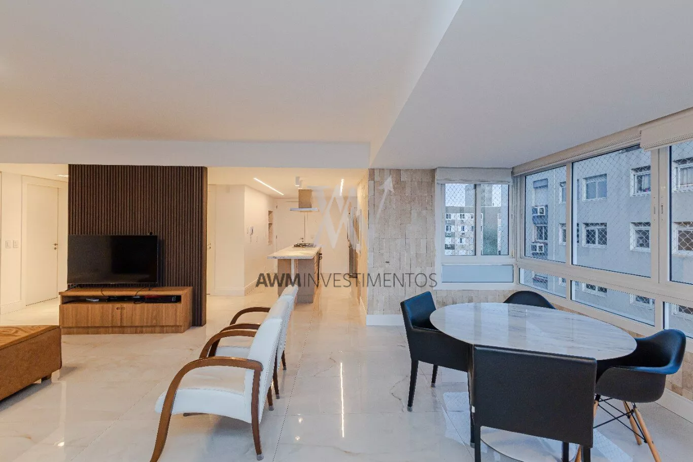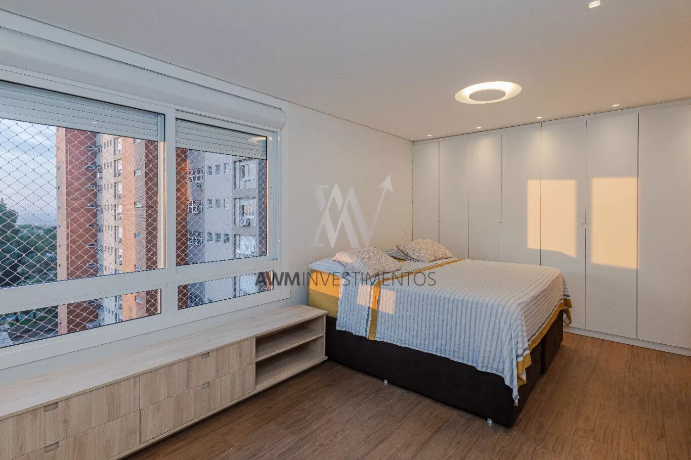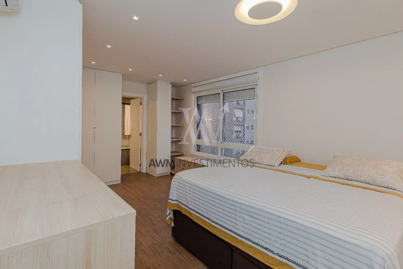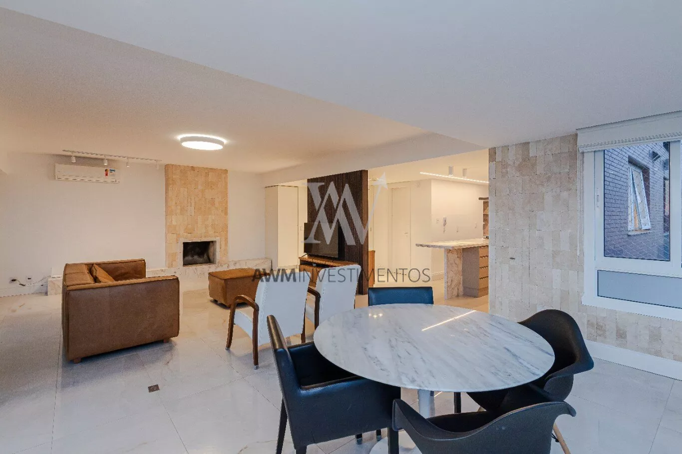 Awm Vende apartamento com 03 dormitórios e 03 suítes sendo 0a Master, semi mobiliado Imóvel possui living com lareira, sacada, cozinha integrada com churrasqueira, lavabo, dependência de empregada, banheiro de serviço. entrada auxiliar .vista definida ,02 vagas de garagem. (individuais).
