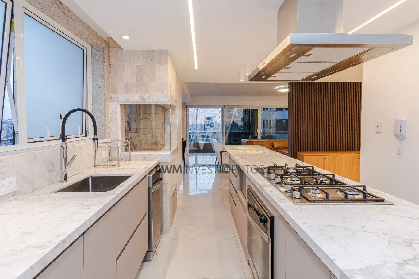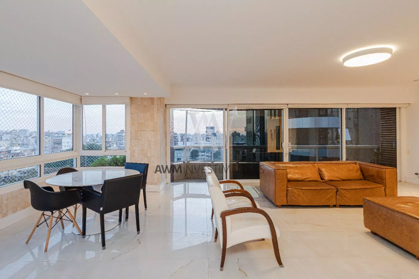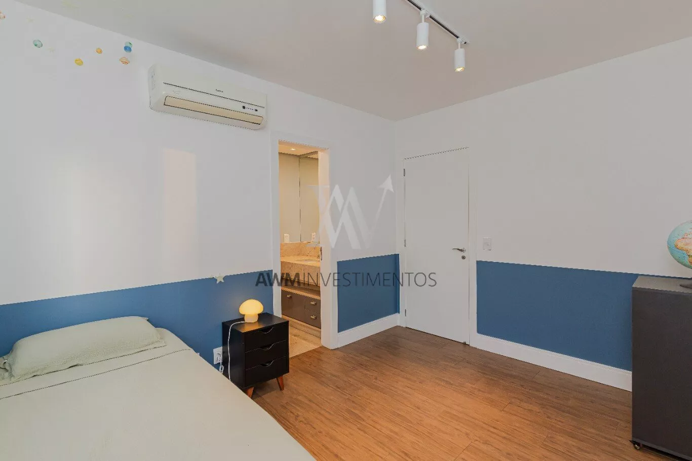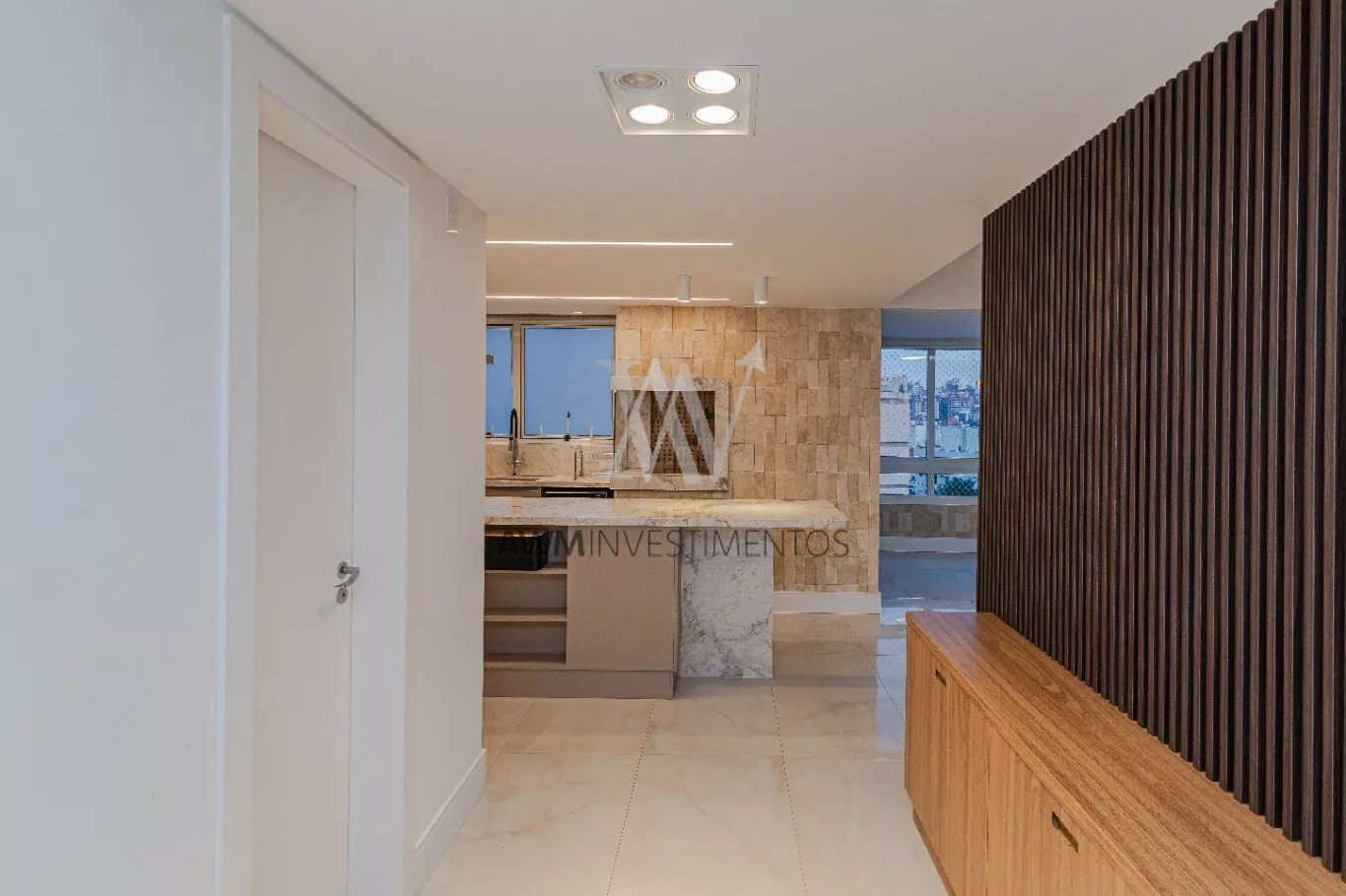 Awm Vende apartamento com 03 dormitórios e 03 suítes sendo 0a Master, semi mobiliado Imóvel possui living com lareira, sacada, cozinha integrada com churrasqueira, lavabo, dependência de empregada, banheiro de serviço. entrada auxiliar .vista definida ,02 vagas de garagem. (individuais).