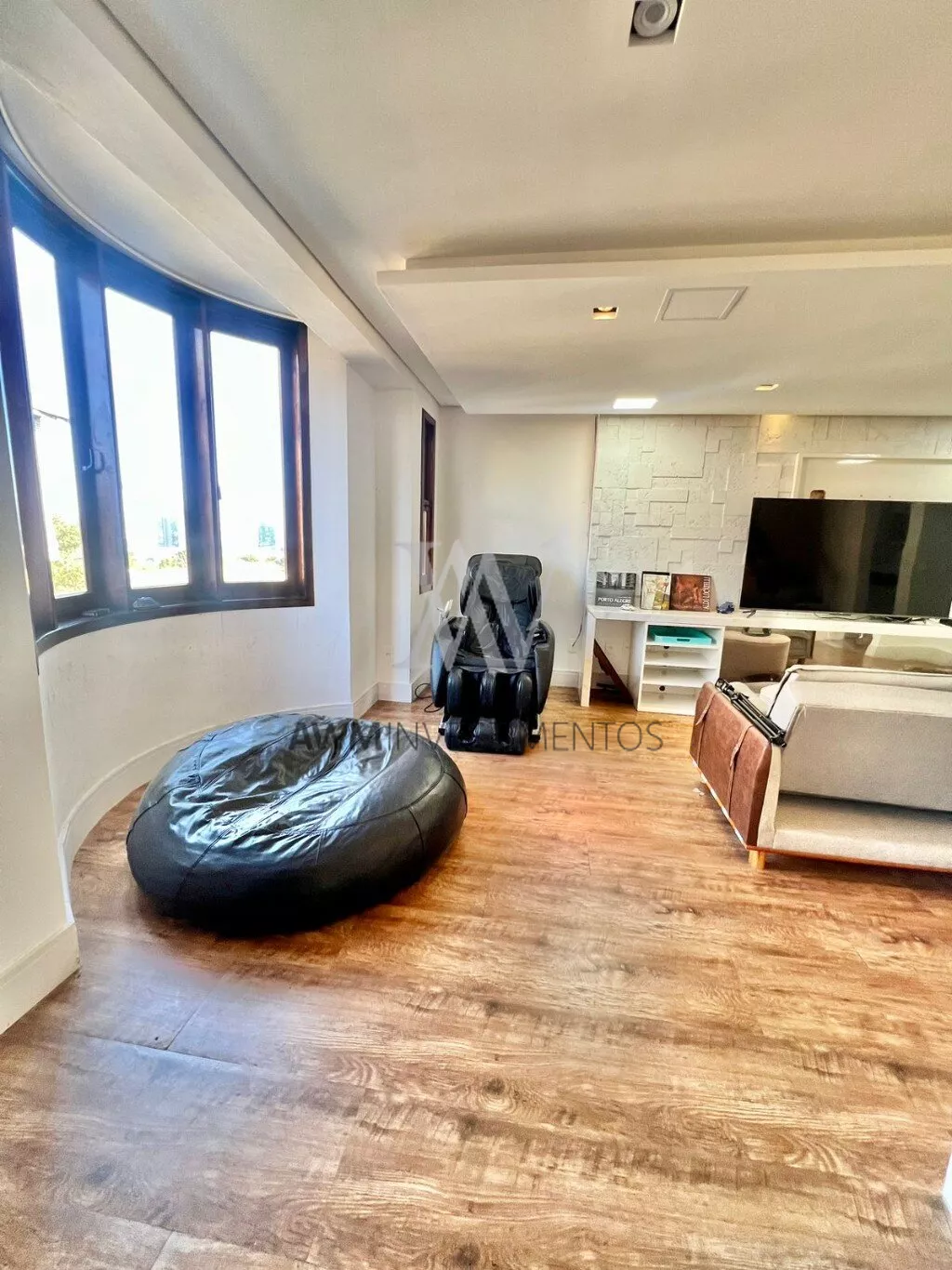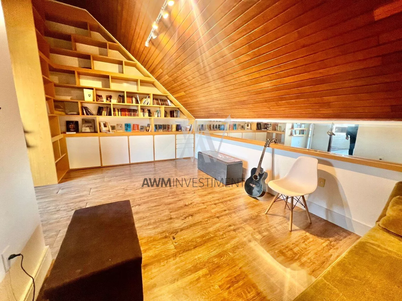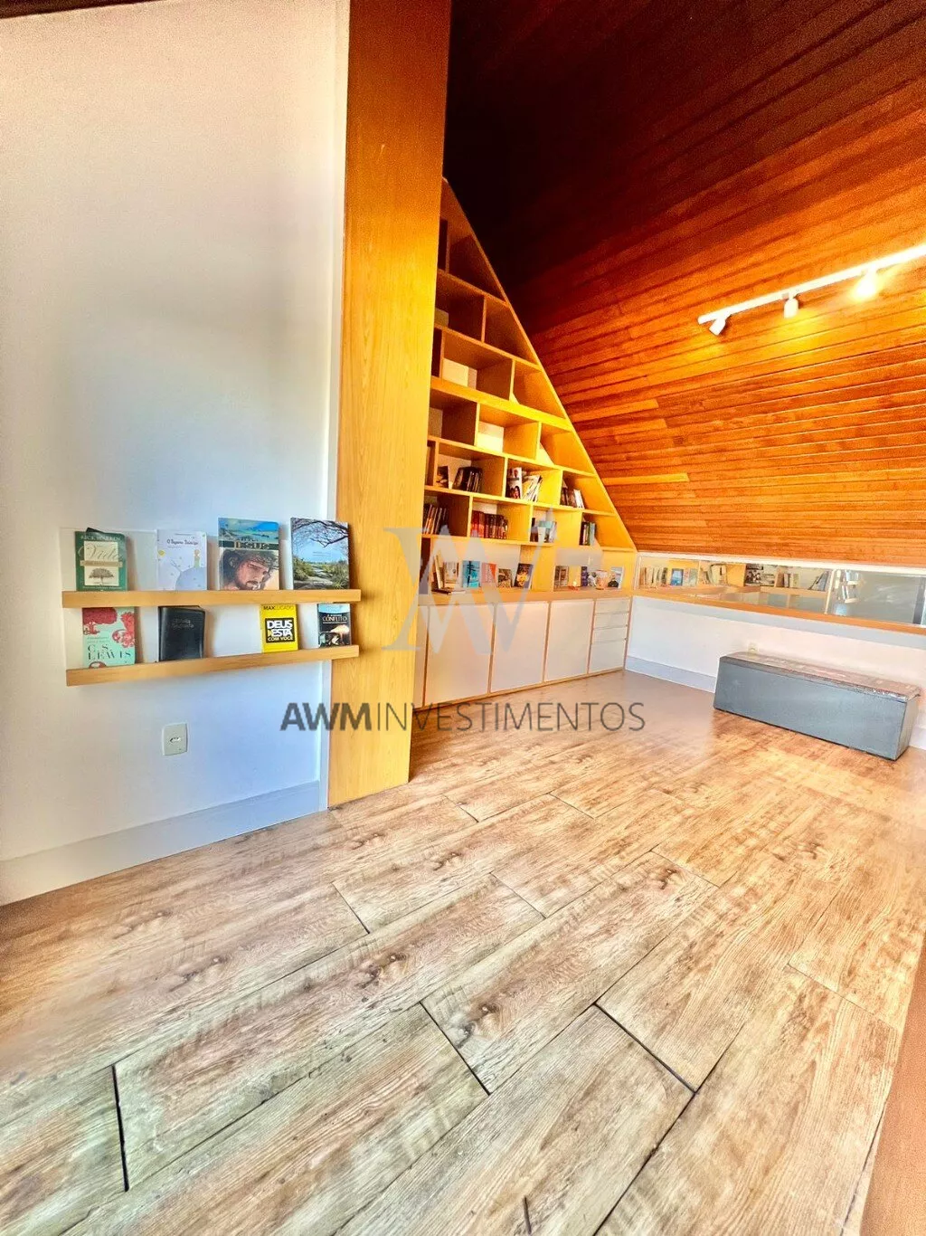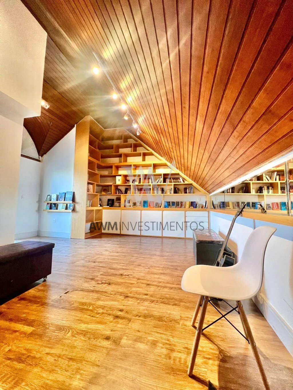 No terceiro andar temos um amplo sótão com uma linda estante planejada,De todos os andares, temos uma vista espetacular para o Guaíba, de todas as janelas, sala, suíte e no sótão.
