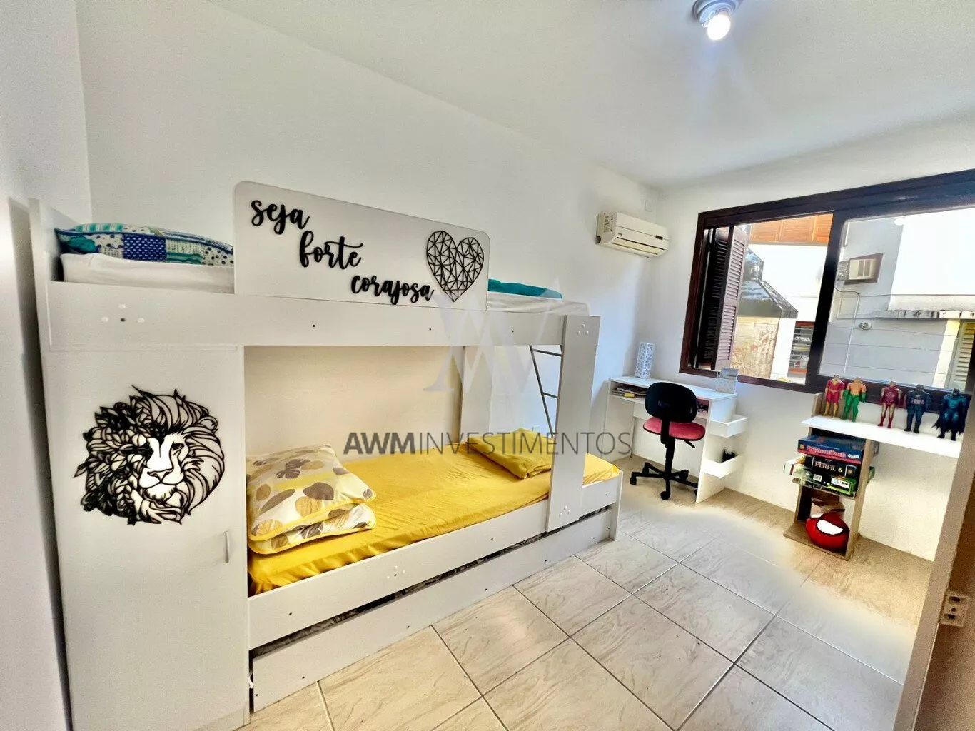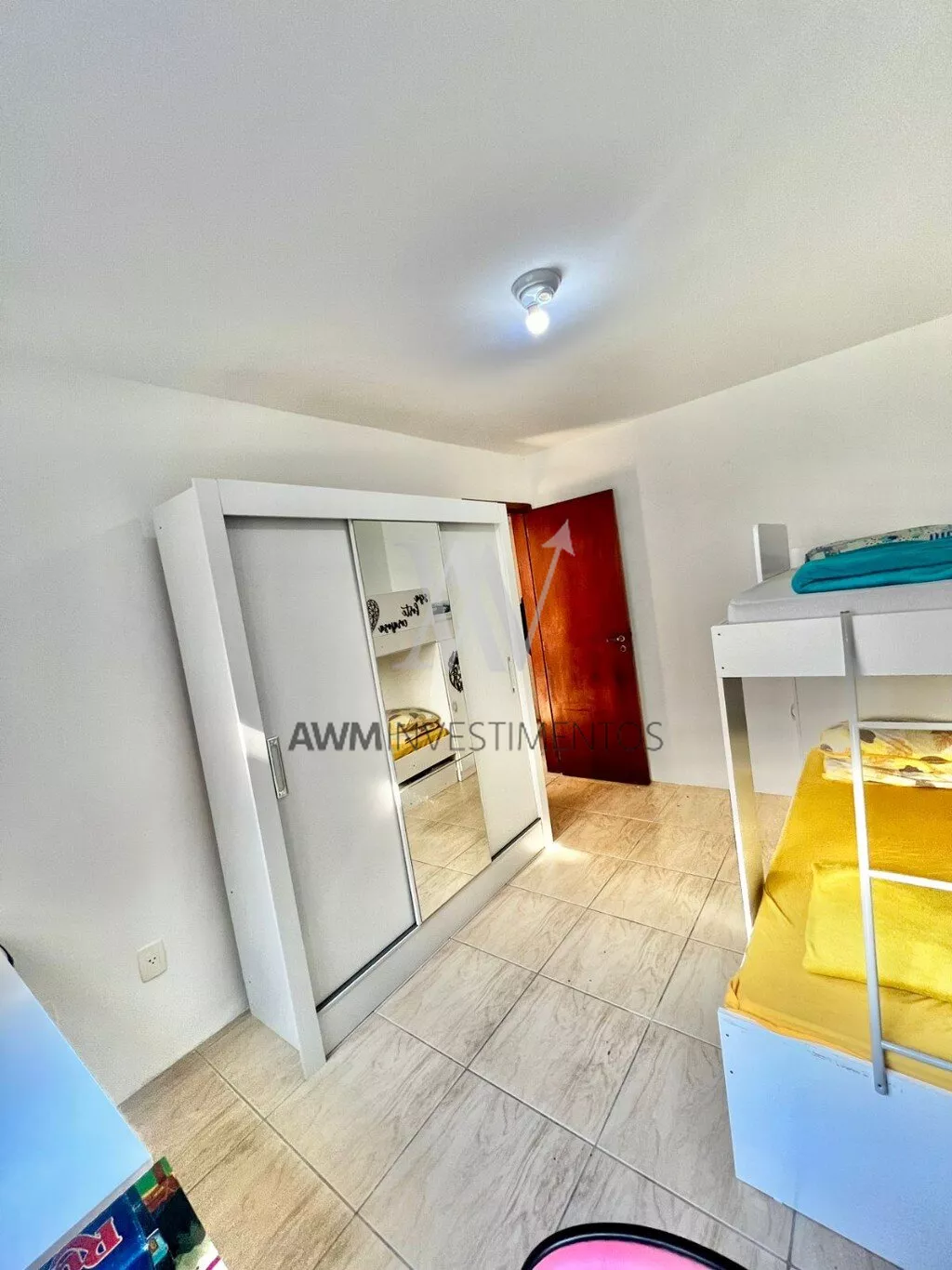 No segundo andar temos os 3 dormitórios, com a suíte, e mais um banheiro social.