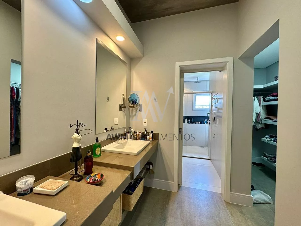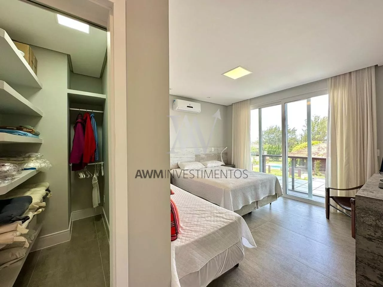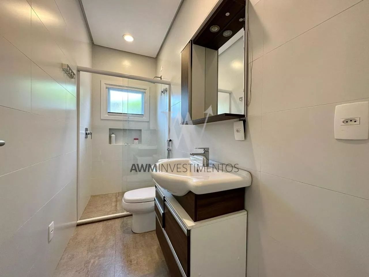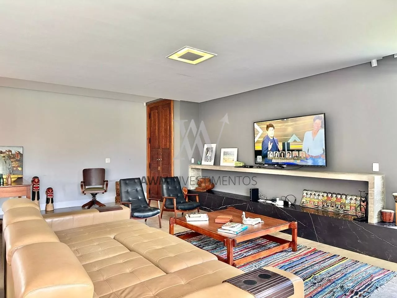 São 570m² de área construída, no primeiro pavimento amplo living para 5 ambientes, com cozinha americana, e cozinha fechada (portas de correr) churrasqueira e forno de pizza, lareira e lavabo. 1 suíte com closet e duas cubas (com acessibilidade). Área externa com pergolado, piscina com área gourmet, choperia e churrasqueira. Depósito e garagem fechada para 4 carros.