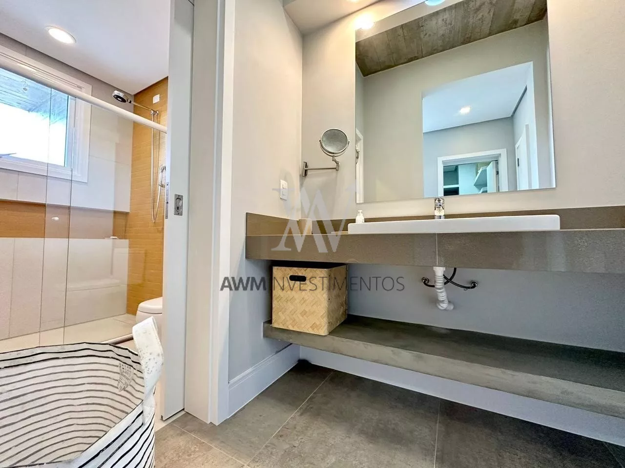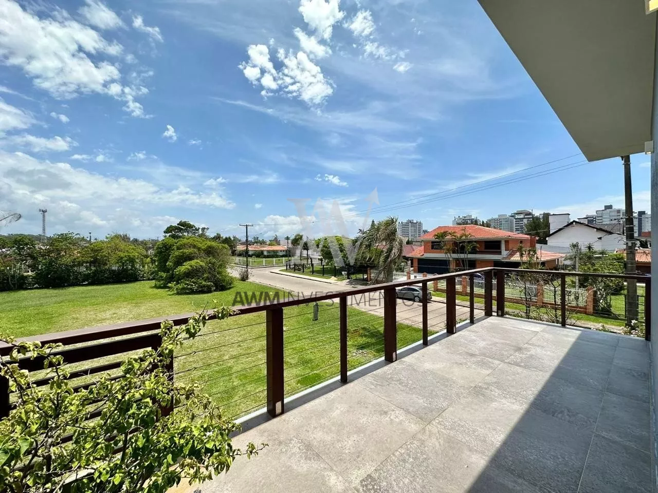 No segundo pavimento são 4 amplas suítes com closet e vista pro mar, sendo a suíte máster com 40m2, duas cubas e bluetooth nos banhos. Sacada superior circunda a casa toda. Esquadrias piso teto. Lavanderia com área externa.