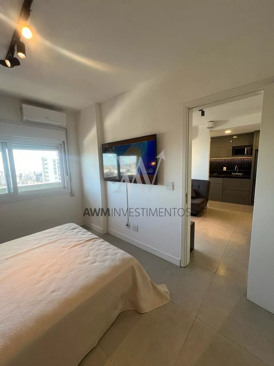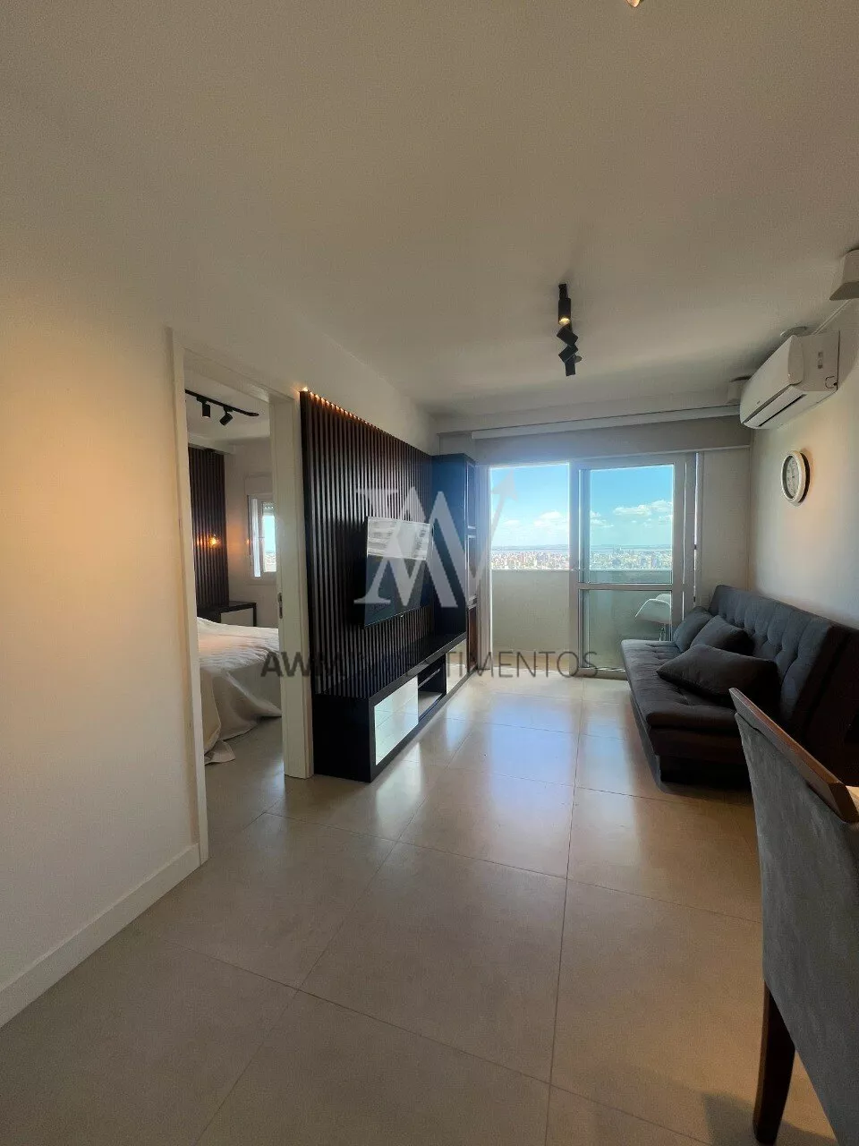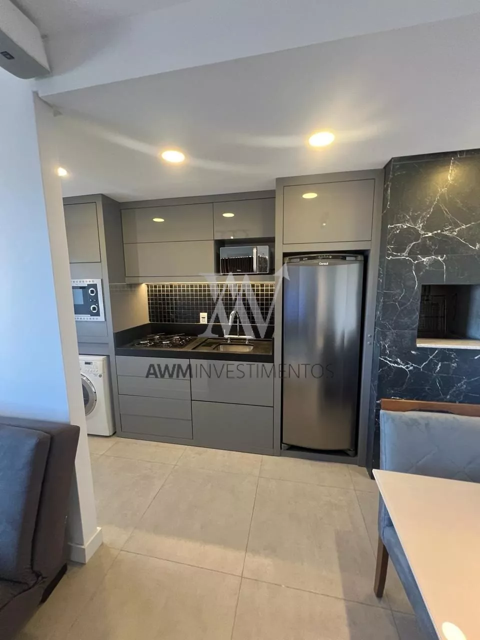 Awm Vende Lindíssimo apartamento mobiliado e decorado, 1 Dormitório com suíte pronto para morar! Acabamentos nobres, sistema de som ambiente e iluminação. Piso em porcelanato e marcenaria premium.