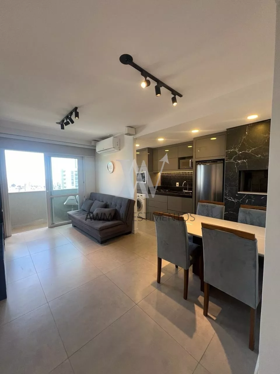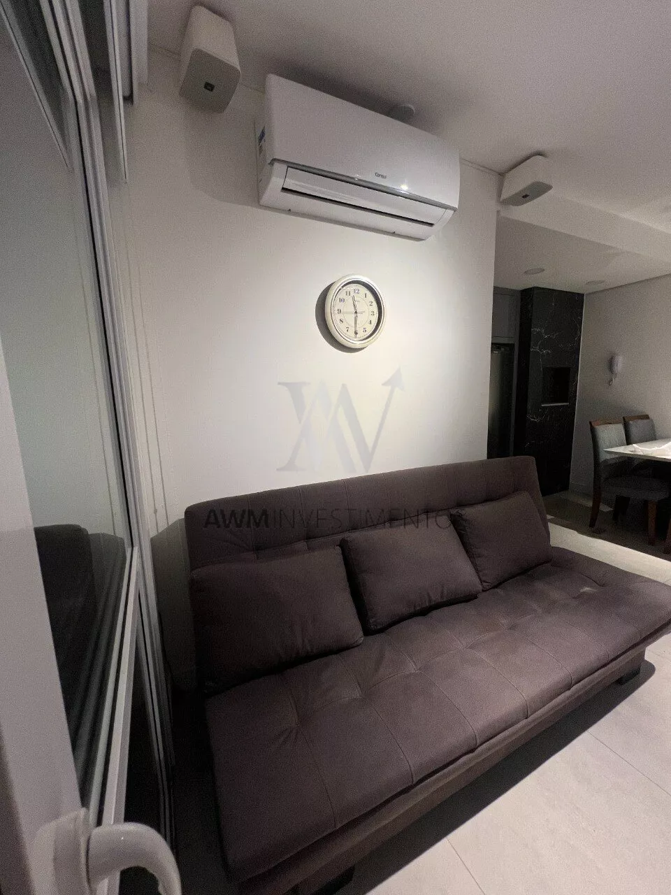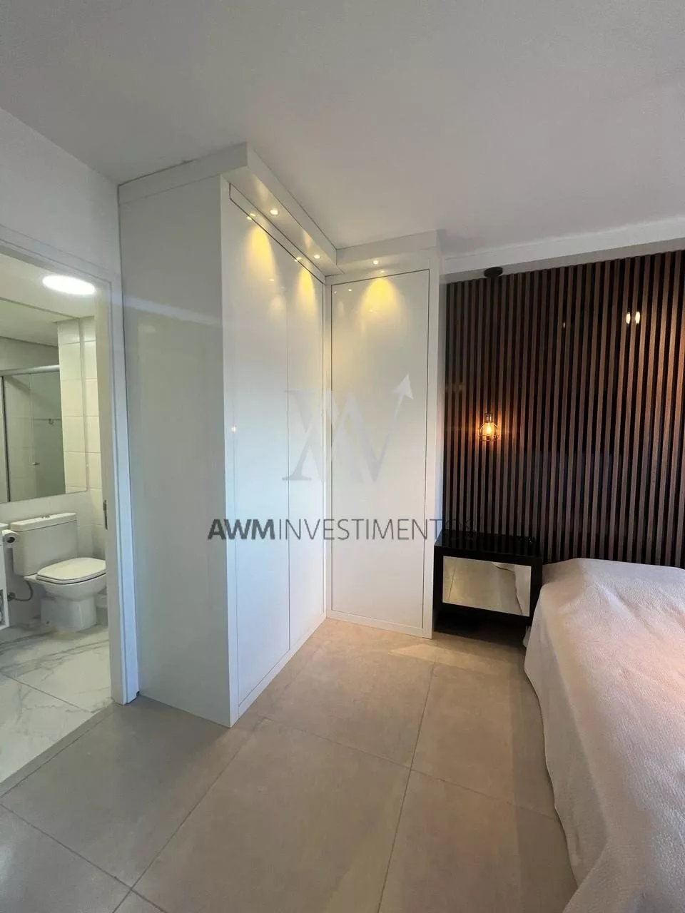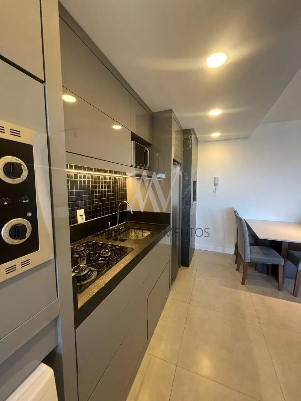 Awm Vende Lindíssimo apartamento mobiliado e decorado, 1 Dormitório com suíte pronto para morar! Acabamentos nobres, sistema de som ambiente e iluminação. Piso em porcelanato e marcenaria premium.