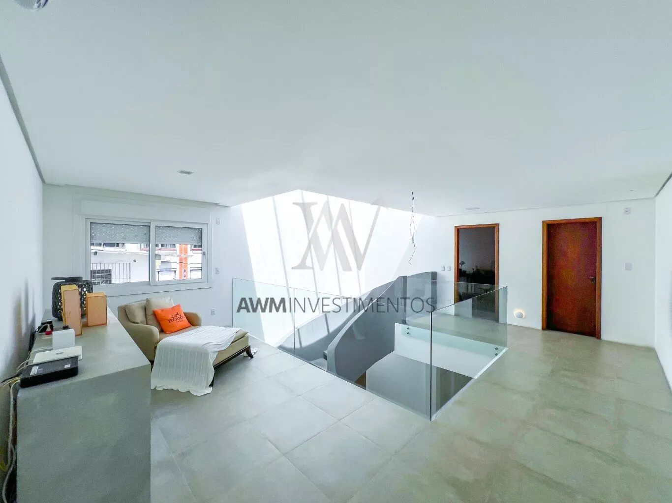 O andar principal conta com hall de entrada, lavabo, living super espaçoso com jantar, estar com lareira, jardim de inverno, cozinha gourmet integrada ao living, lavanderia, ampla varanda com espaço churrasco e um belo pátio com muito verde.